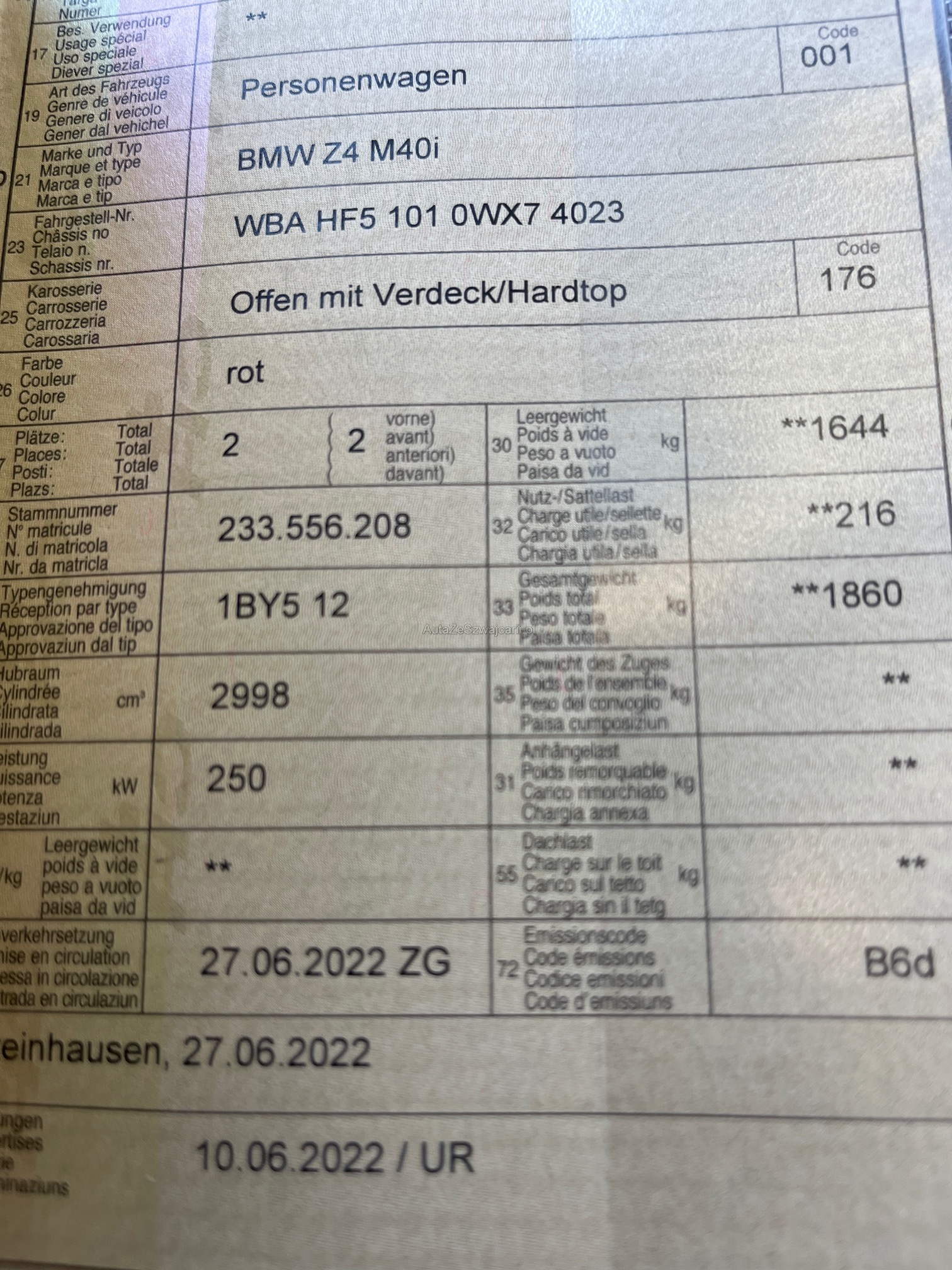 1. rejestracja: 27 czerwca 2022