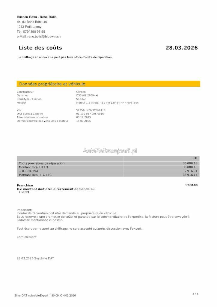 | Reparaturkosten | 38'916.00 CHF |