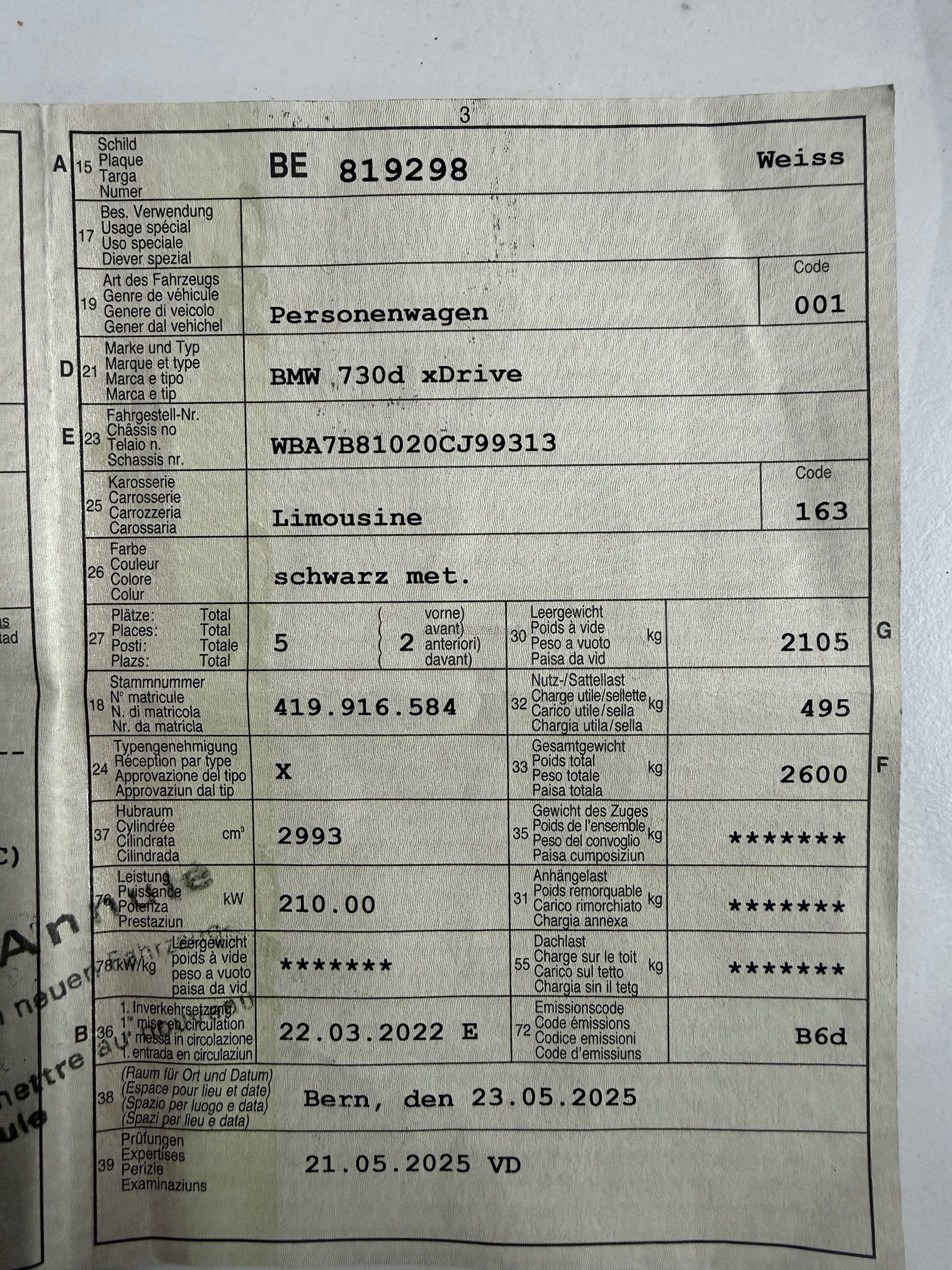| Kommentar | Kundenauftrag Frisch Ab Service Autobahn Kilometer Fährt einwandfrei Gut Zustand Neu Winterpneu im Jan 2026 Montiert Am Fahrzeug wurde kein Werkstatttest gemacht (Für sichtbare oder nicht sichtbare Mängel wird nicht gehaftet). Wir testen & kontrollieren nicht alle Funktionen vom Fahrzeug. Das Risiko liegt somit vollumfänglich beim Käufer. Nachdem der Höchstbietende den Zuschlag erhalten hat, gibt es keine Nachverhandlung, auch wenn nicht deklarierte Mängel zum Vorschein kommen sollten. Ab Platz ohne Garantie, Wandelung und Minderung werden wegbedungen. Abholung nach Zuschlag innert 3 Tagen. |