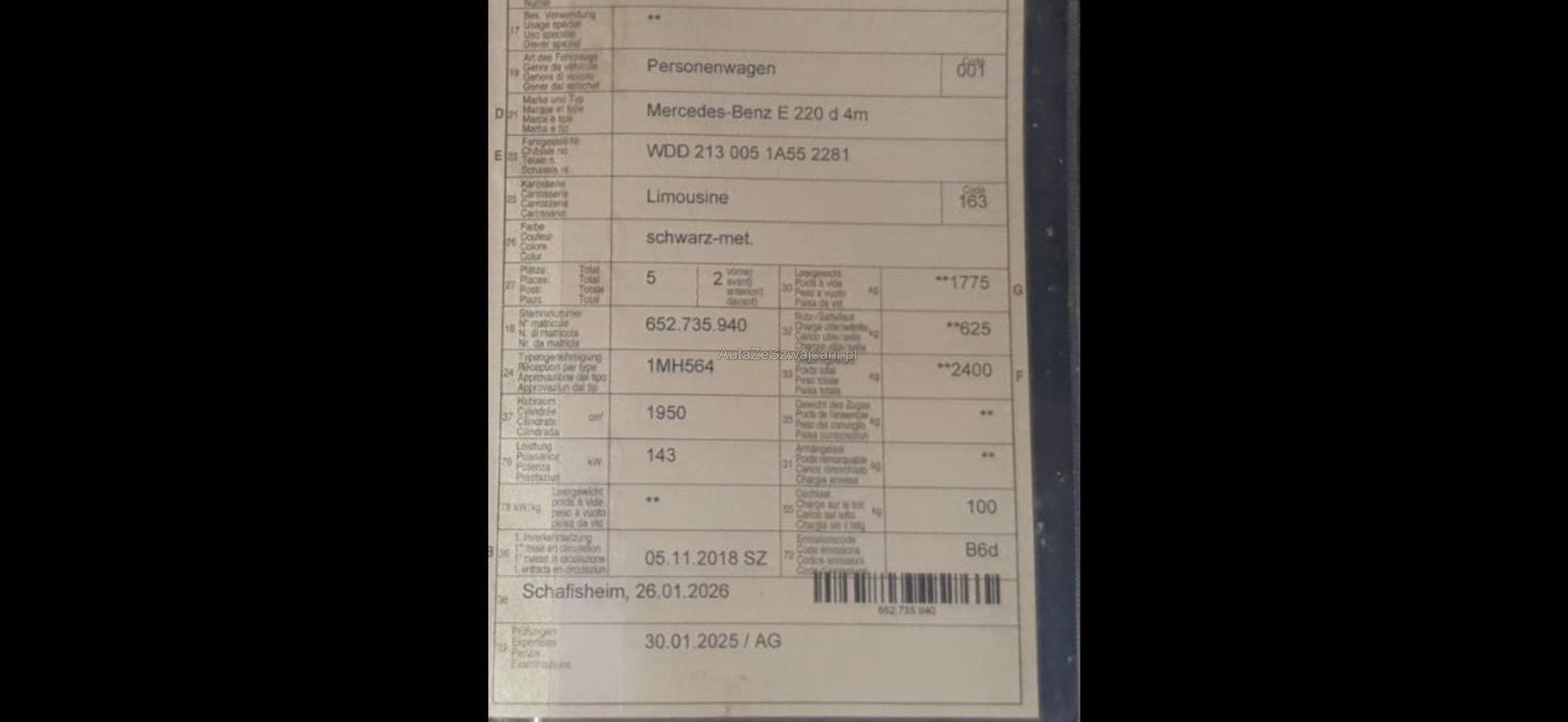 | Kommentar | Die Fotos wurden vom Kunden gemacht. Laut Kunde läuft das Fahrzeug einwandfrei ohne Probleme oder Defekt. Hinweis zum Fahrzeugverkauf: Das Fahrzeug wurde keinem Werkstatttest unterzogen. Eine Überprüfung sämtlicher Funktionen wurde nicht durchgeführt. Für sichtbare sowie nicht sichtbare Mängel wird keine Haftung übernommen. Der Verkauf erfolgt ab Platz, ohne Garantie oder Gewährleistung. Jegliche Ansprüche auf Wandelung oder Minderung werden ausdrücklich wegbedungen. Nach Zuschlag bzw. Kaufabschluss sind Nachverhandlungen ausgeschlossen, auch im Falle nachträglich entdeckter, nicht deklarierter Mängel. Das Risiko trägt vollumfänglich der Käufer |
