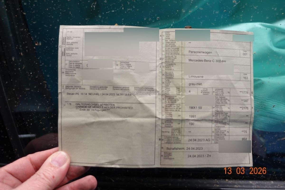 | Fahrzeugausweis | Vorhanden |
