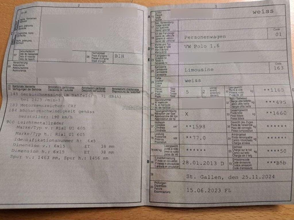 | Fahrzeugausweis | Vorhanden |