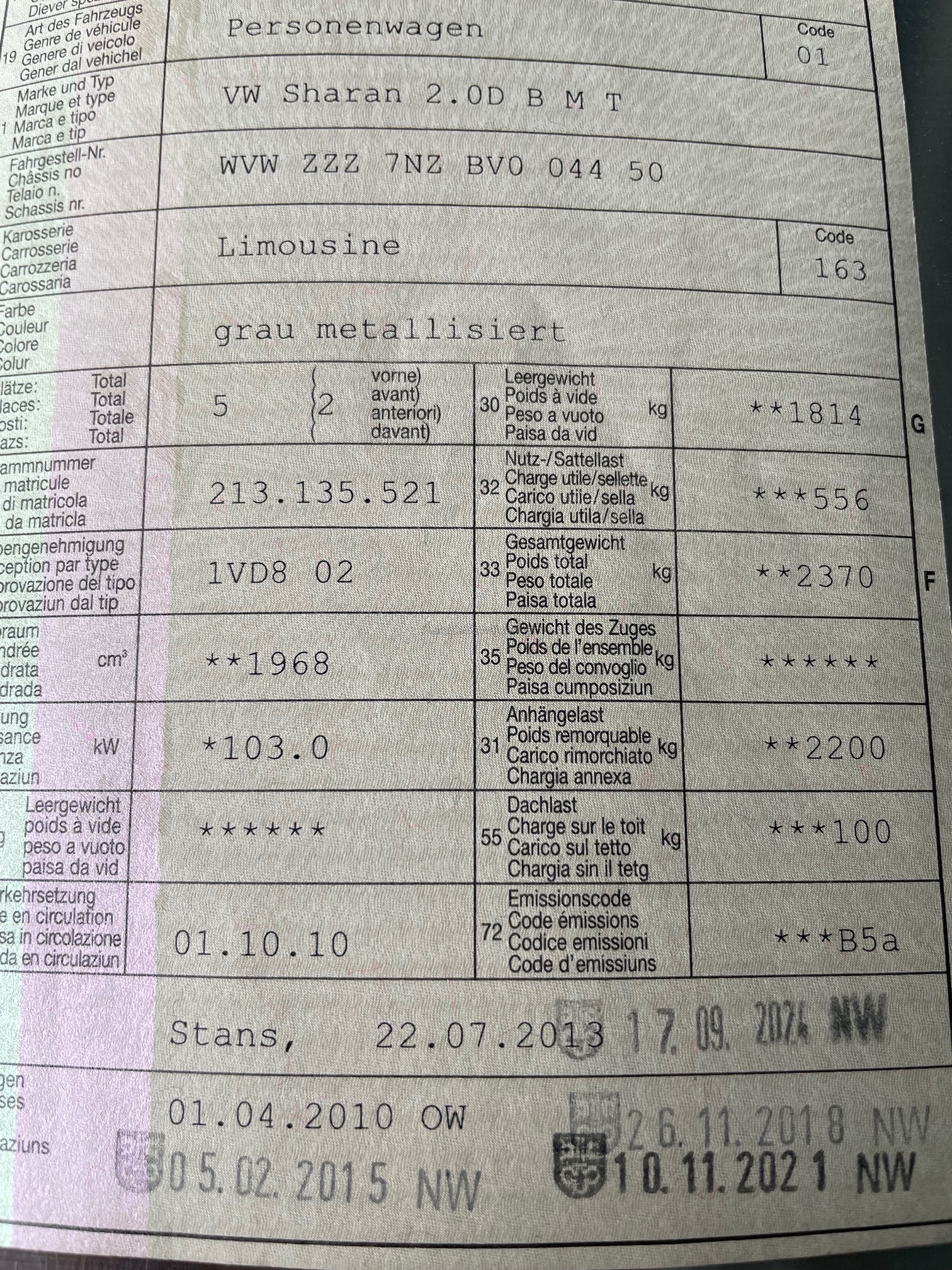 VW Sharan 2.0D B M T