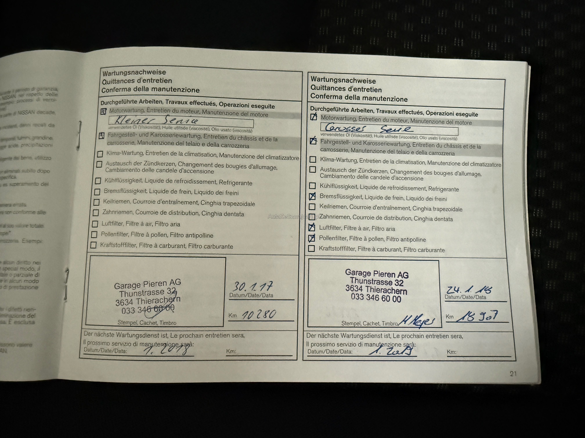 | Kommentar | Am Fahrzeug wurde kein Werkstatt-Check durchgeführt - Service + MFK fällig Innen ist der Nissan sehr gepflegt, aussen hat er ein paar Kratzer (siehe Fotos) Das Fahrzeug wird ab Platz und ohne Garantie verkauft, keine Nachverhandlungen! |