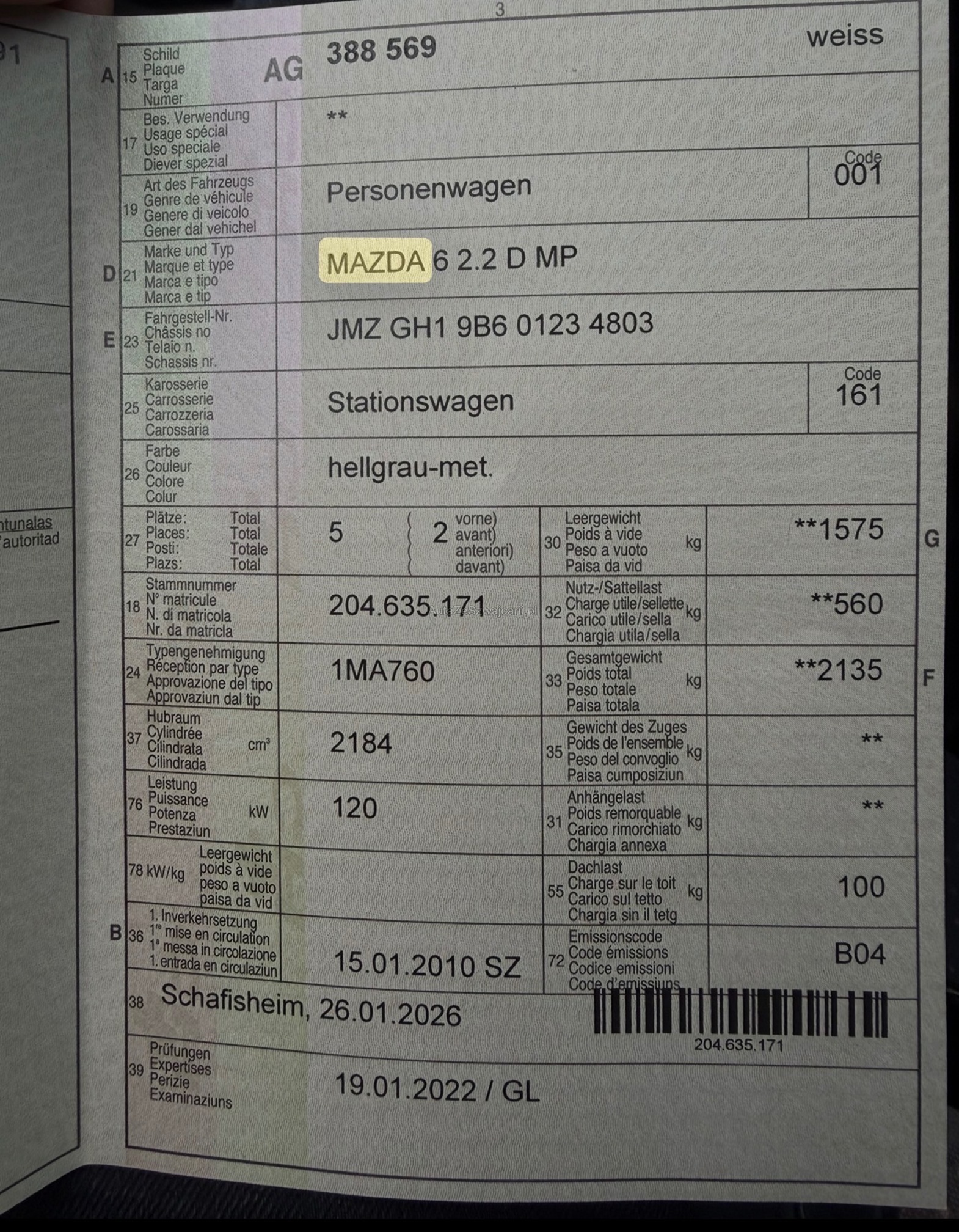 MAZDA 6 2.2 D MP