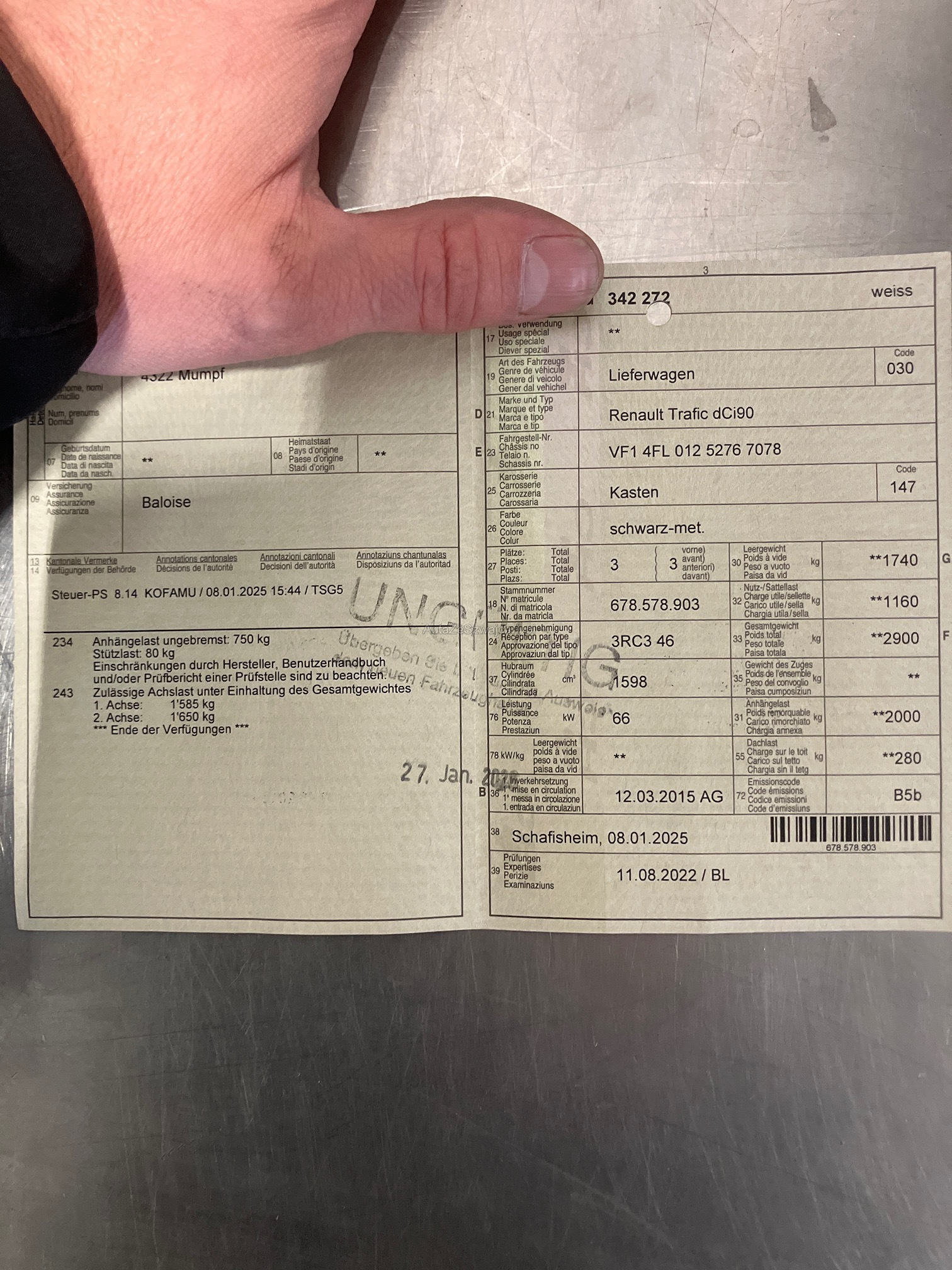 | Kommentar | Unfallfahrzeug ohne Werkstattkontrolle. Nur 1 Schlüssel vorhanden |