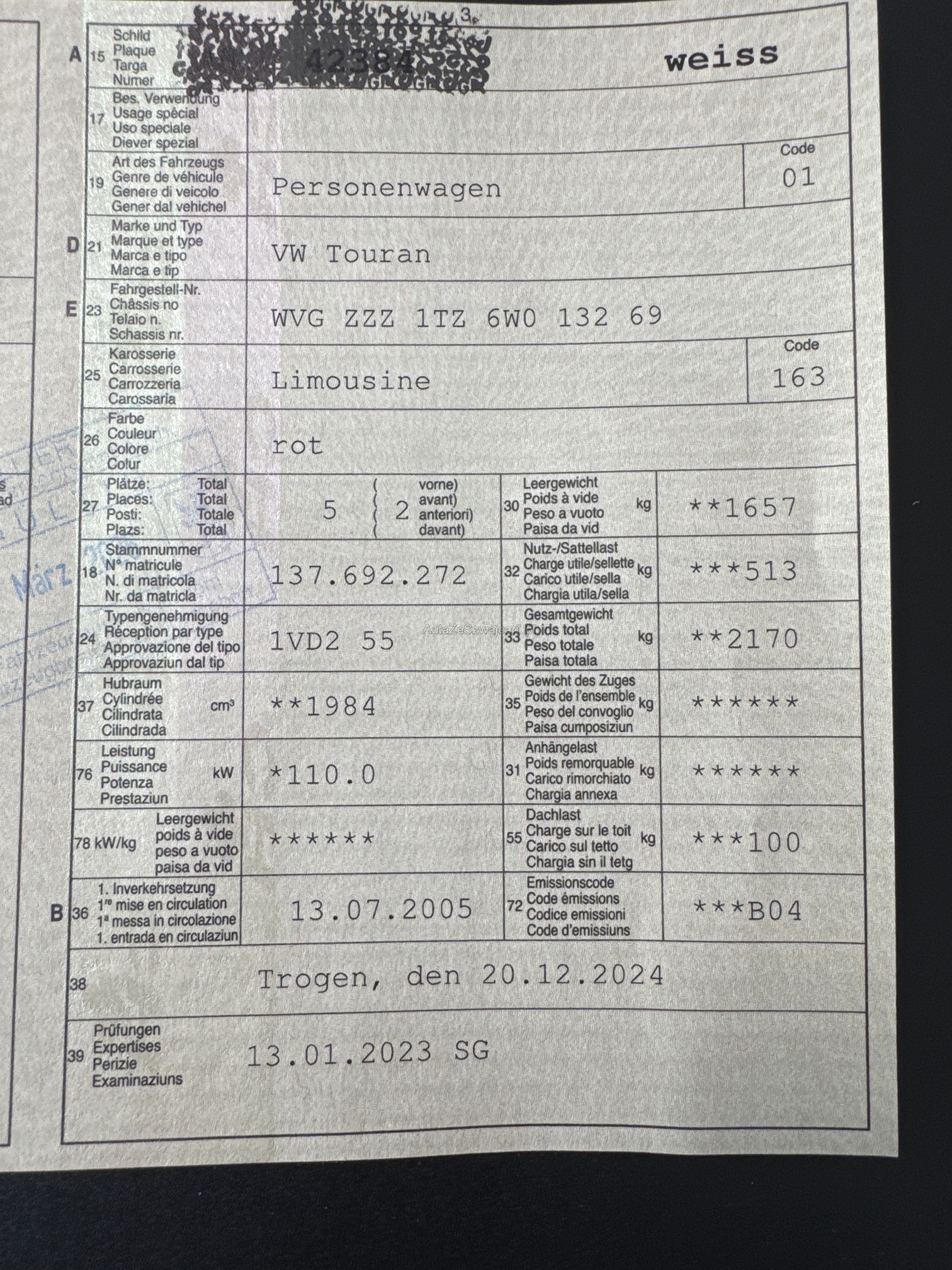 | VIN | WVGXXX |
