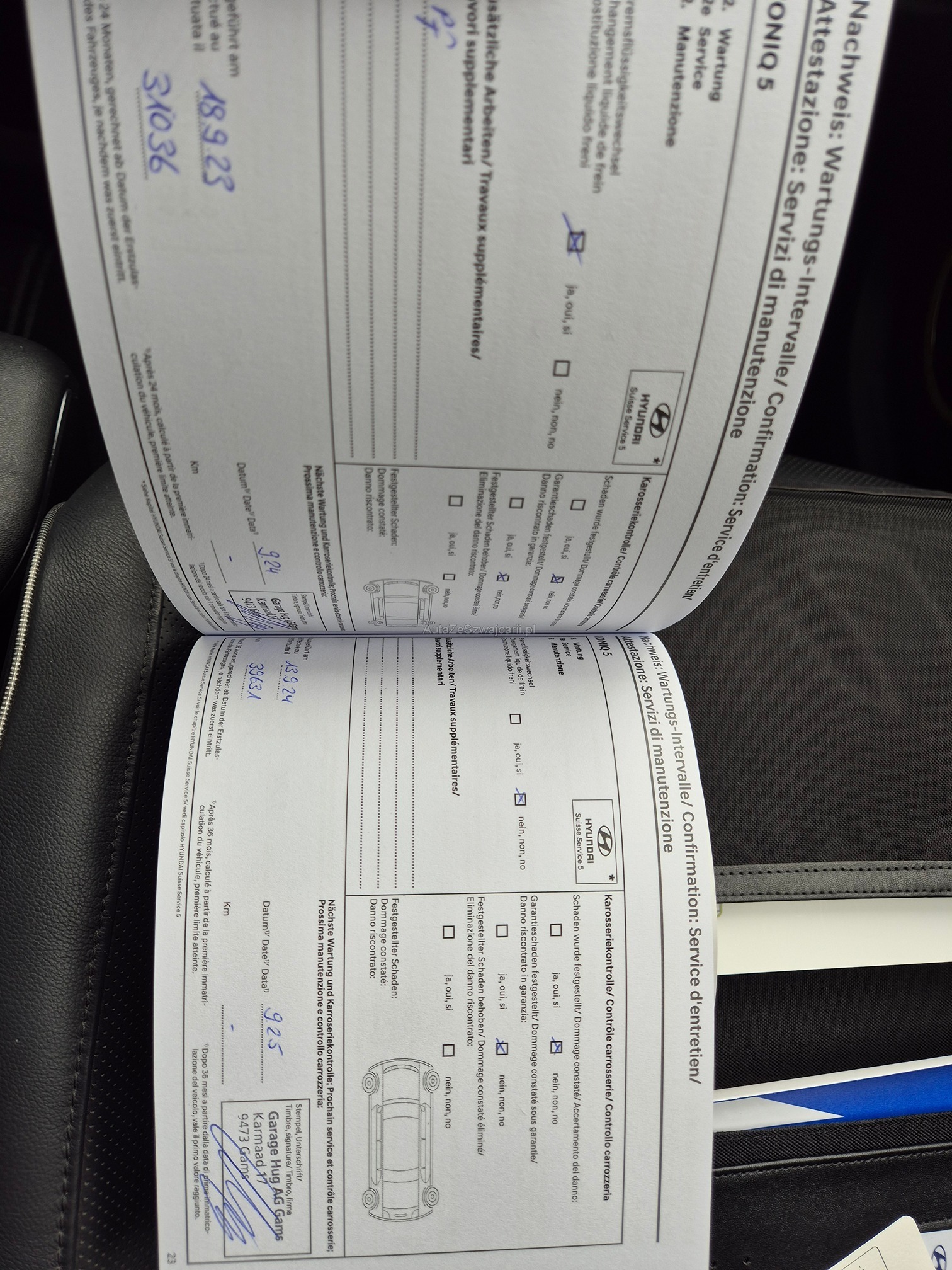 | Kommentar | Winterpneu und Sommerpneu sollten ersetzt werden (Alter) Fortlaufende Werksgarantie bis 16.11.2026 - Kratzer Türe hinten rechts unten (Plastik) - Kratzer Stossstange hinten links unten (Plastik) Sonst keine Mängel bekannt! Wir testen & kontrollieren nicht alle Funktionen vom Fahrzeug. Das Risiko liegt somit vollumfänglich beim Käufer. Nachdem der Höchstbietende den Zuschlag erhalten hat, gibt es keine Nachverhandlung, auch wenn nicht deklarierte Mängel zum Vorschein kommen sollten. Ab Platz ohne Garantie, Wandelung und Minderung werden wegbedungen. |