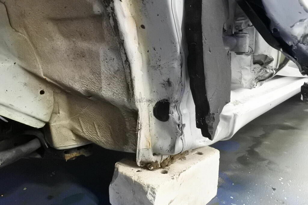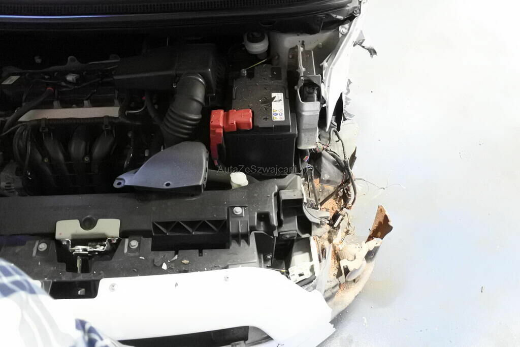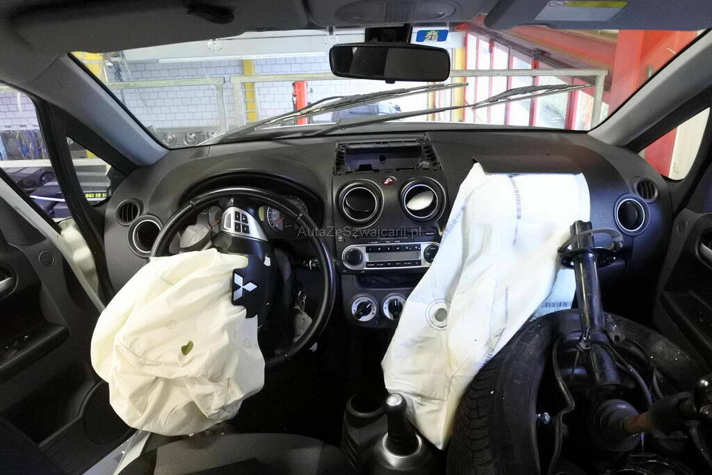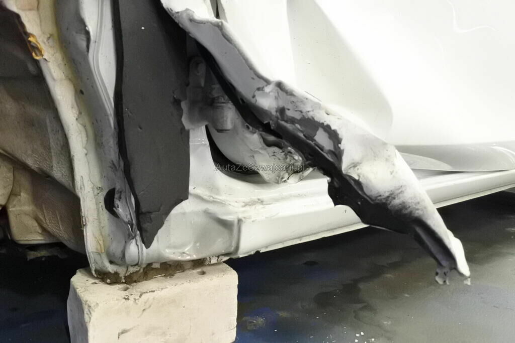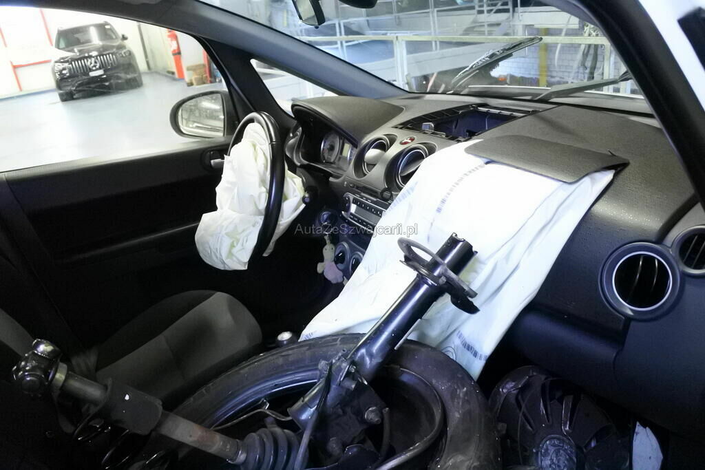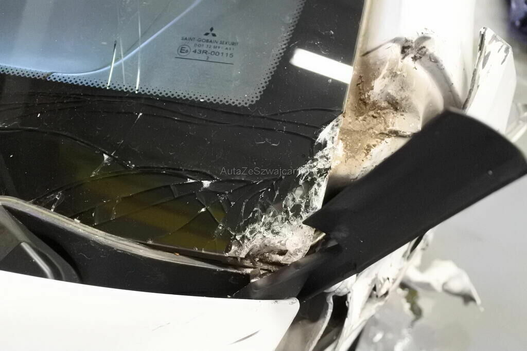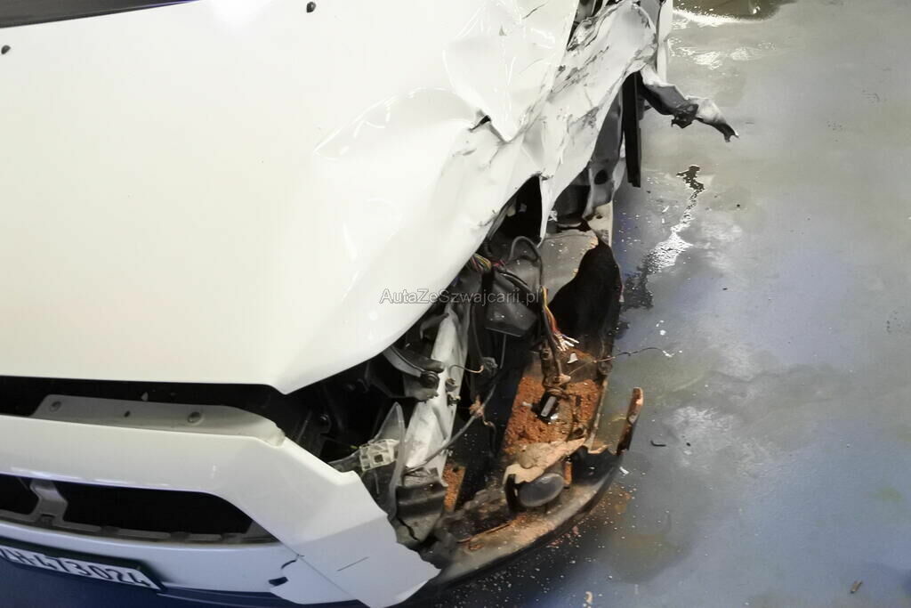 Die Stossstange mit Anbauteilen, Befestigungen, die Quertraverse, der Scheinwerfer, die Motorhaube, der Schlossträger, der Kotflügel mit Aufnahme, Radhausschale, das Radhaus, das Scheibenrad mit Aufhängung und Lenkung, die Fahrertür sowie der Schweller sind beschädigt. Beide Frontairbags und die Gurtenstraffer vorne wurde ausgelöst.Das Armaturenbrett und die Frontscheibe sind zerstört.