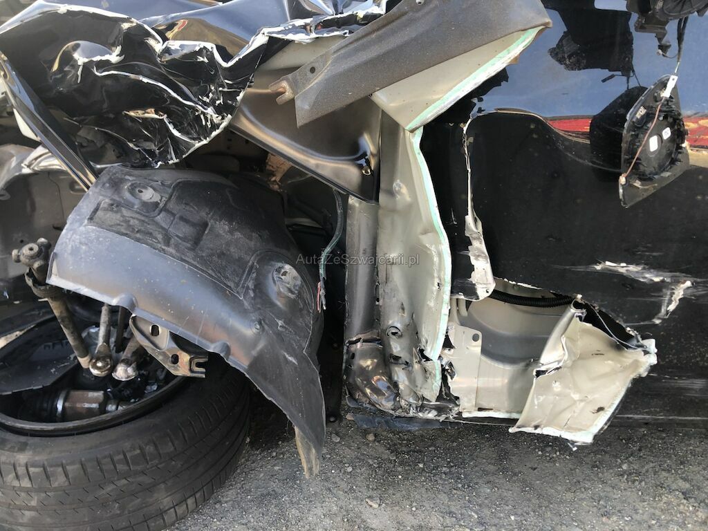 Lacerato completamente ant, sx, sospensione ant. sx, deformato in modo marcato montante con abitacolo e sottoporta sx. . Sospensione post. sx deformata e cerchi lacerato con pneumatici.
