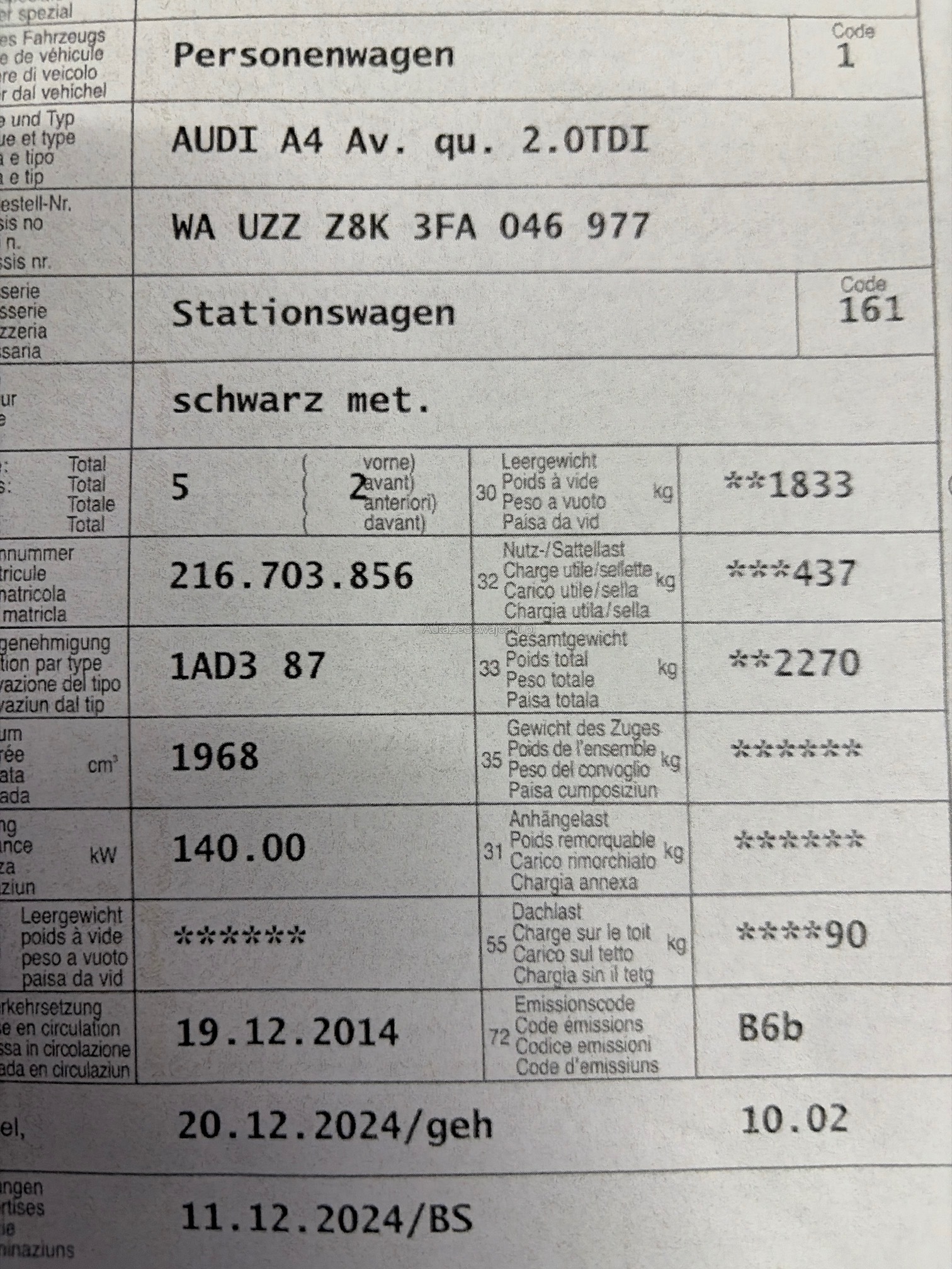 | VIN | WAUXXX |