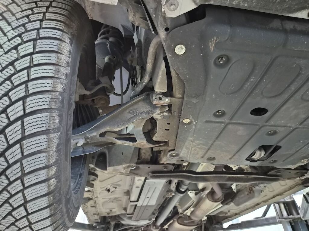 Unfallschaden durch Aufprall unterhalb des Fahrzeugs auf der rechten Seite mit Beschädigungen am Querträger, am Motorträger, am Bodenblech, am Hinterrad sowie diversen Anbauteilen