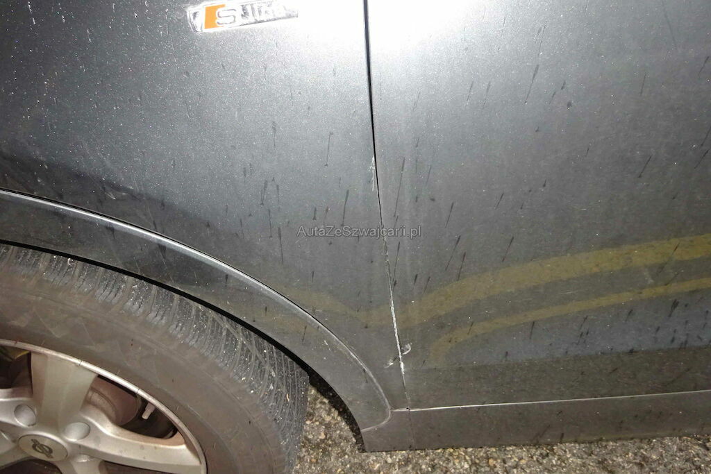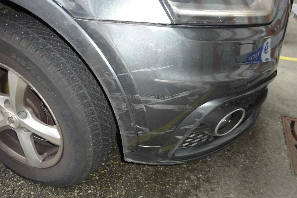 Pare-chocs, aile, phare, capot, porte, jante, suspension, direction, feu anti-brouilard et calandre endommagés