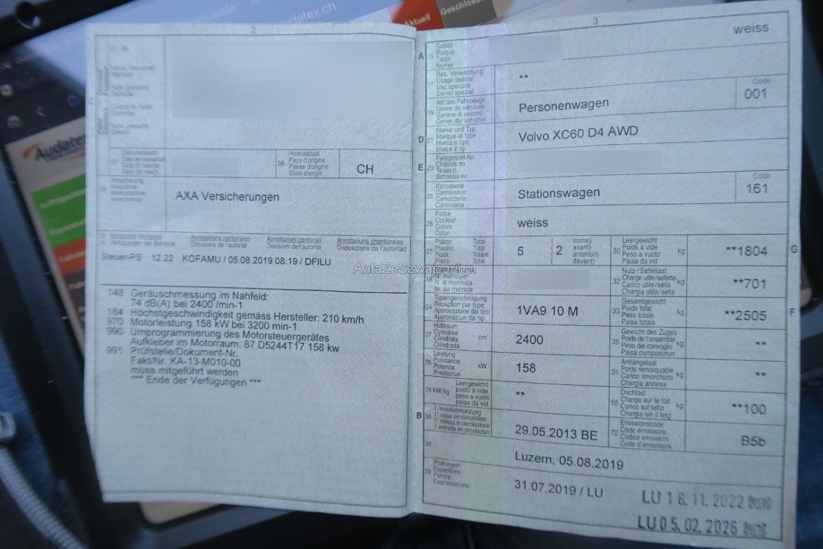 | Fahrzeugausweis | Vorhanden |