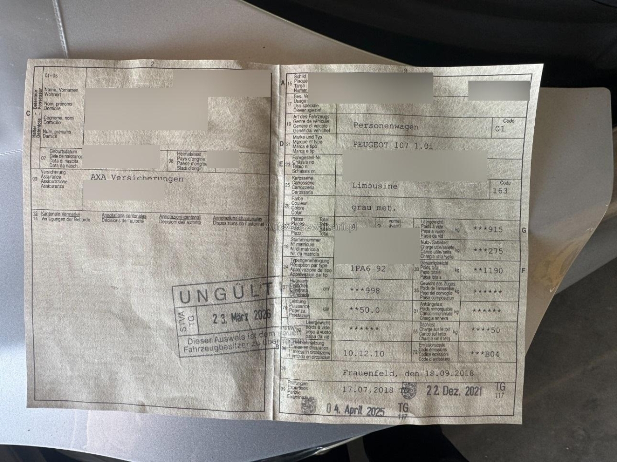 | Fahrzeugausweis | Vorhanden |