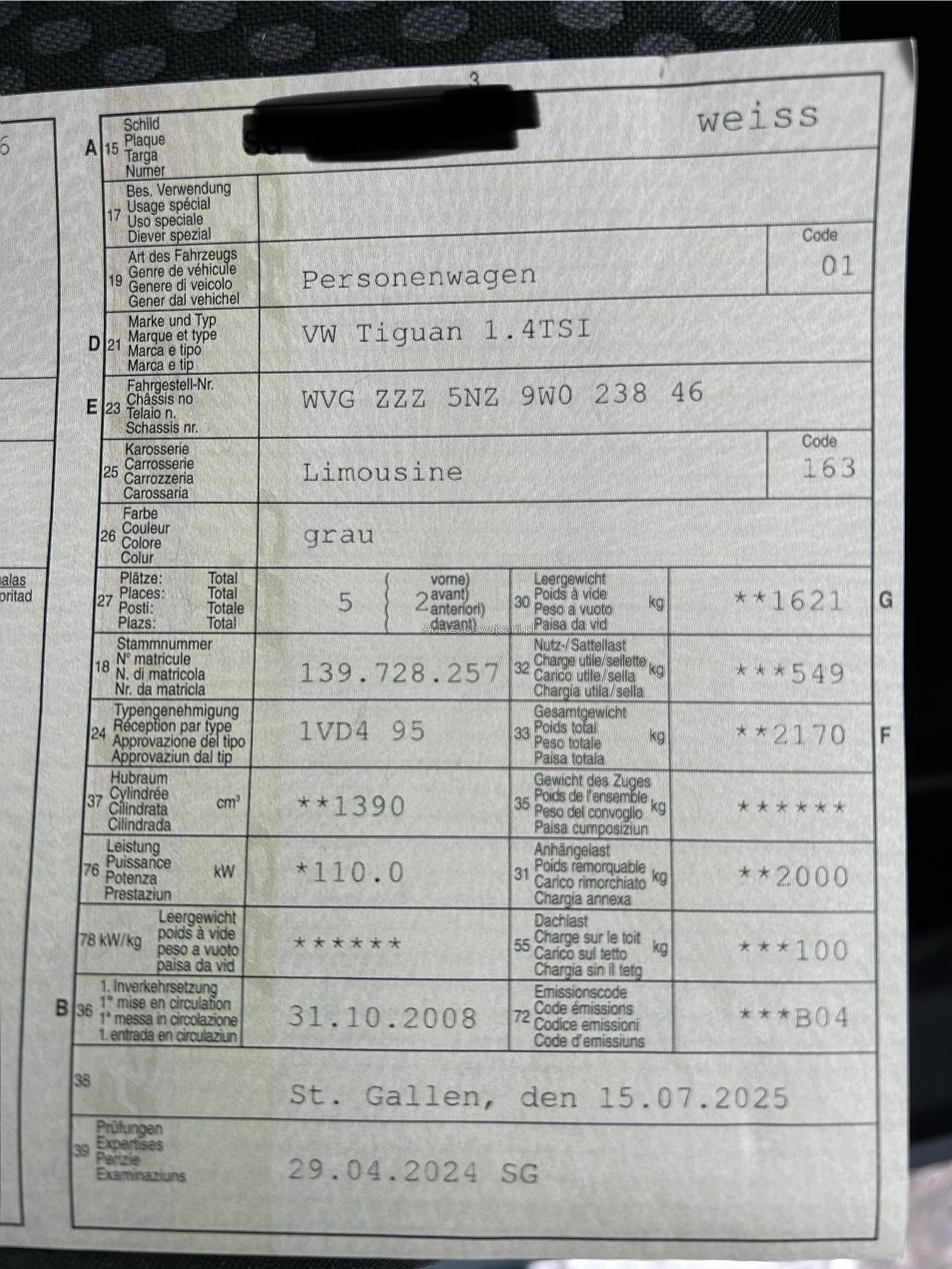| Kommentar | Am Fahrzeug wurde keine vollumfängliche Prüfung der mechanischen Teile und der Carrosserie durchgeführt! Das Risiko liegt somit vollumfänglich beim Käufer Nach Zuschlag, keine Nachverhandlungen möglich. Ab Platz ohne Garantie, Wandelung und Minderung werden wegbedungen. Das Fahrzeug muss ab Abgabe Datum innert 5 Tagen abgeholt werden, bei nicht Einhaltung der Frist werden pro Tag CHF 30.00 verrechnet. Kunde bestätig hiermit, dass er auf die Erklärung des Fahrzeuges verzichtet und die oben genannten Elemente versteht. Bei uns werden die FZ nur gegen Barzahlung abgeholt. |