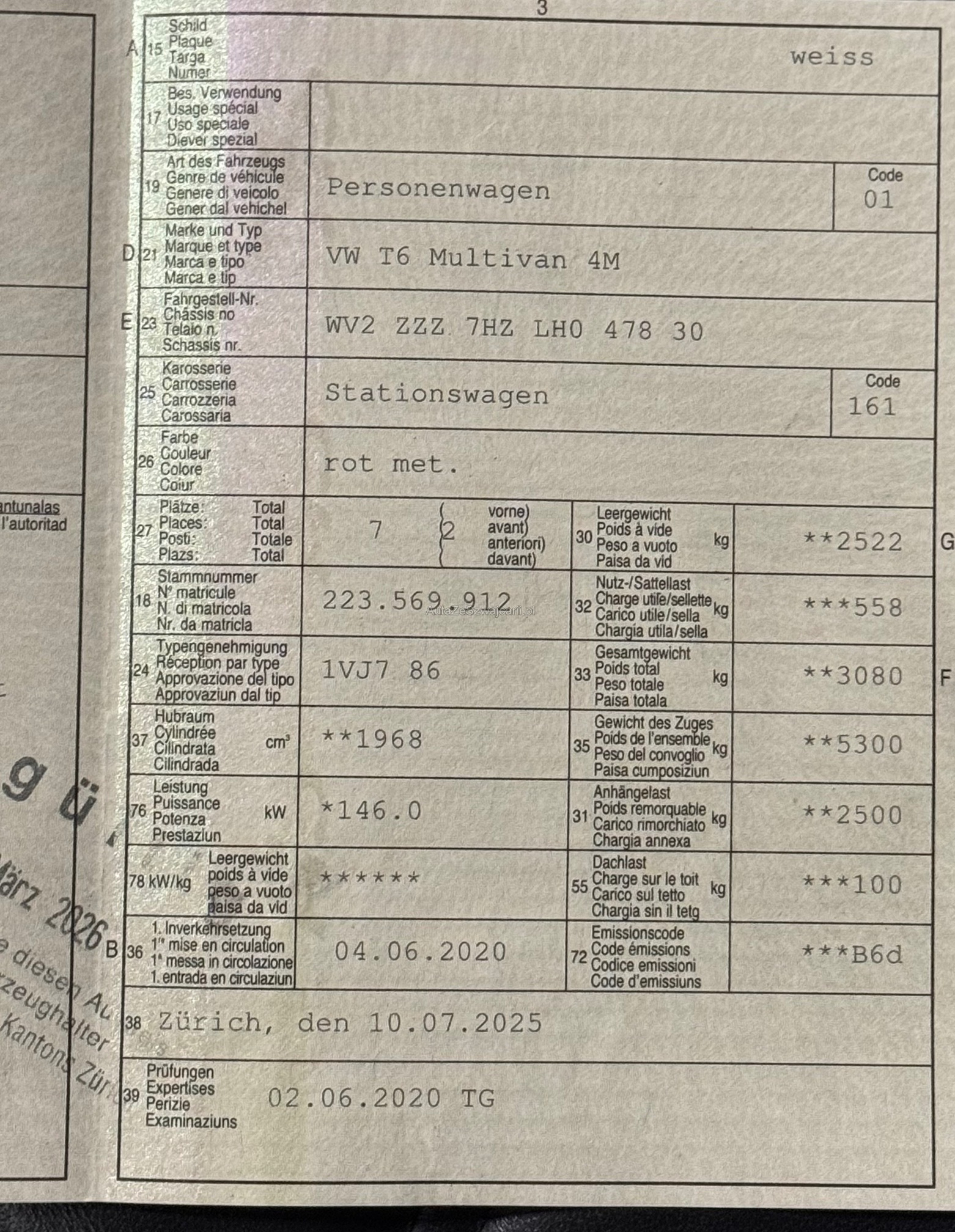 | Kommentar | Fahrzeugdetails - VW T6.1 Highline Bulli • Kein Werkstatttest durchgeführt • Frisch ab MFK • CH-Fahrzeug • Sehr gepflegter Zustand • Vollausstattung (Bulli Edition) • AHK • Standheizung • Scheckheft gepflegt - Service wurde gerade eben durchgeführt • 8-fach bereift (Sommer & Winter) auf VW Originalräder • Carrosserie & Innenraum: an der Front blättert der Klarlack ab, 2-3 kleine Steinschläge an der Motorhaube, feine Kratzer bei der Schiebetür li. und eine kleine Beule bei der Fahrertür | Innenraum sehr gepflegt! __________________________________ Das Fahrzeug wurde nicht werkstattgeprüft. Es erfolgt kein Test samtlicher Funktionen, daher wird weder für sichtbare noch für unsichtbare Mängel gehaftet. Der Verkauf erfolgt ab Platz, ohne Garantie oder Gewährleistung. Wandelung, Minderung und Nachverhandlungen sind ausgeschlossen. |