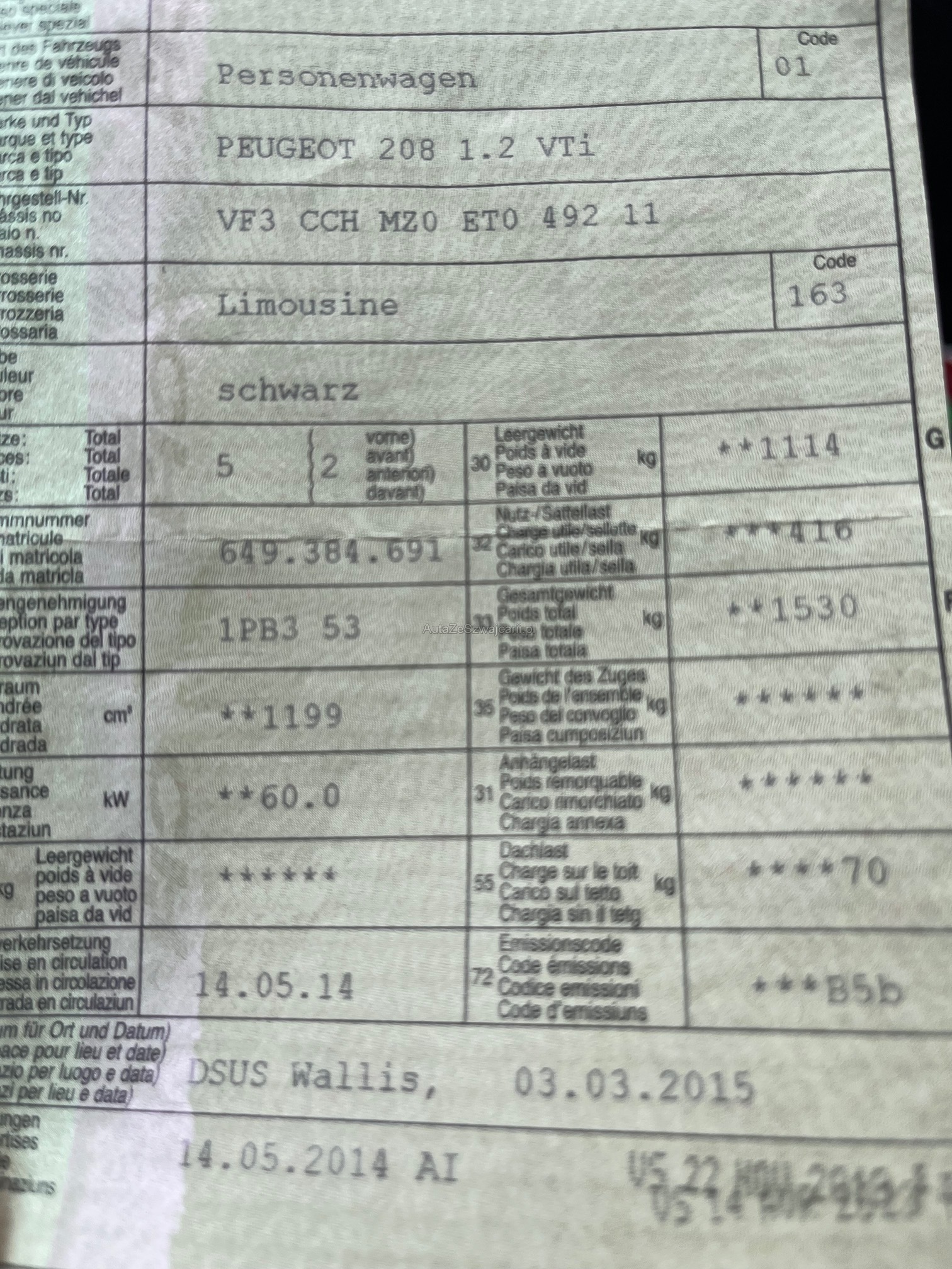 | Kommentar | Es handelt sich um ein Occasion Fahrzeug das Gebrauchsspuren aufweist. Es wurde kein detaillierter Werkstatttest am Fahrzeug gemacht. Jede Gewährleistung, soweit nach Gesetz möglich, wird wegbedungen, insbesondere sind Wandelung und Minderung ausgeschlossen. Der Käufer bestätigt mit seinem Gebot, dies anzuerkennen und verpflichtet sich, das ersteigerte Fahrzeug umgehend nach einer Banküberweisung abzuholen. Der Preis ist fix und nicht mehr verhandelbar! Es wird grundsätzlich kein Werkstatttest durchgeführt. |