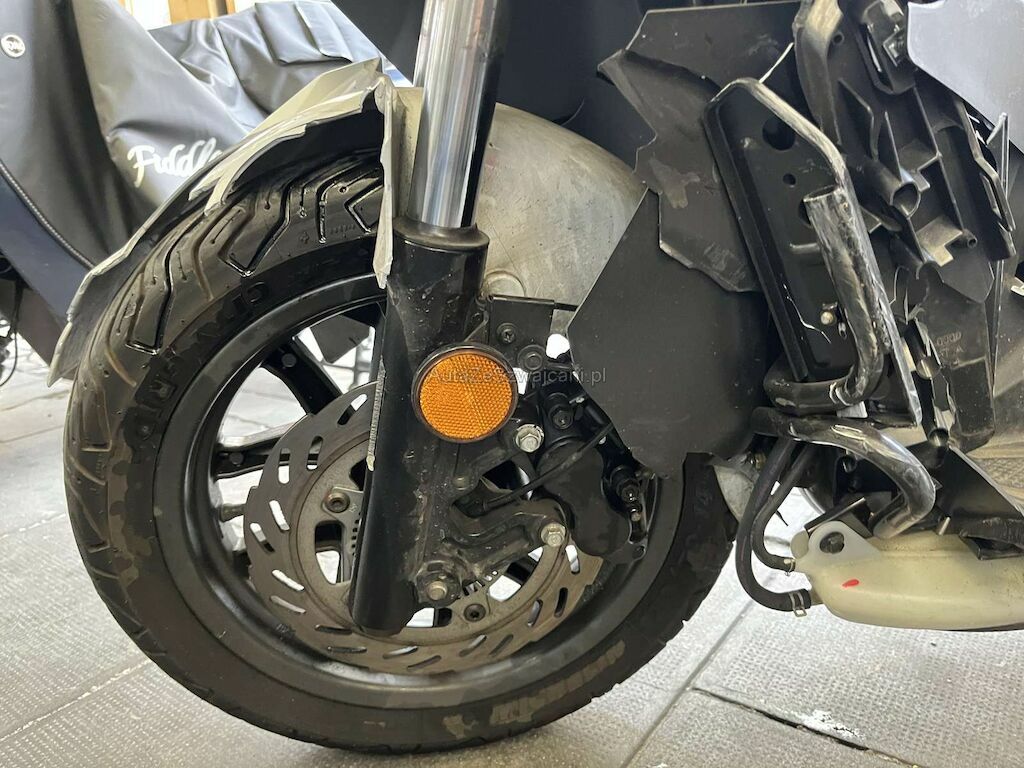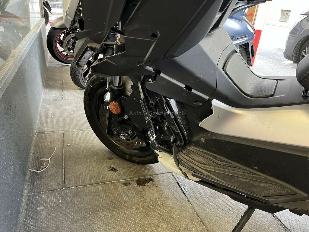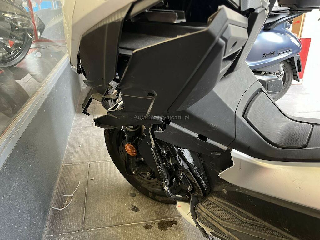 Choc avant: Fourche avant, Face avant, support de face avant, phare, cadre, tablier intérieur, pare-boue avant, bas de caisse droit, guidon endommagés et cassés.