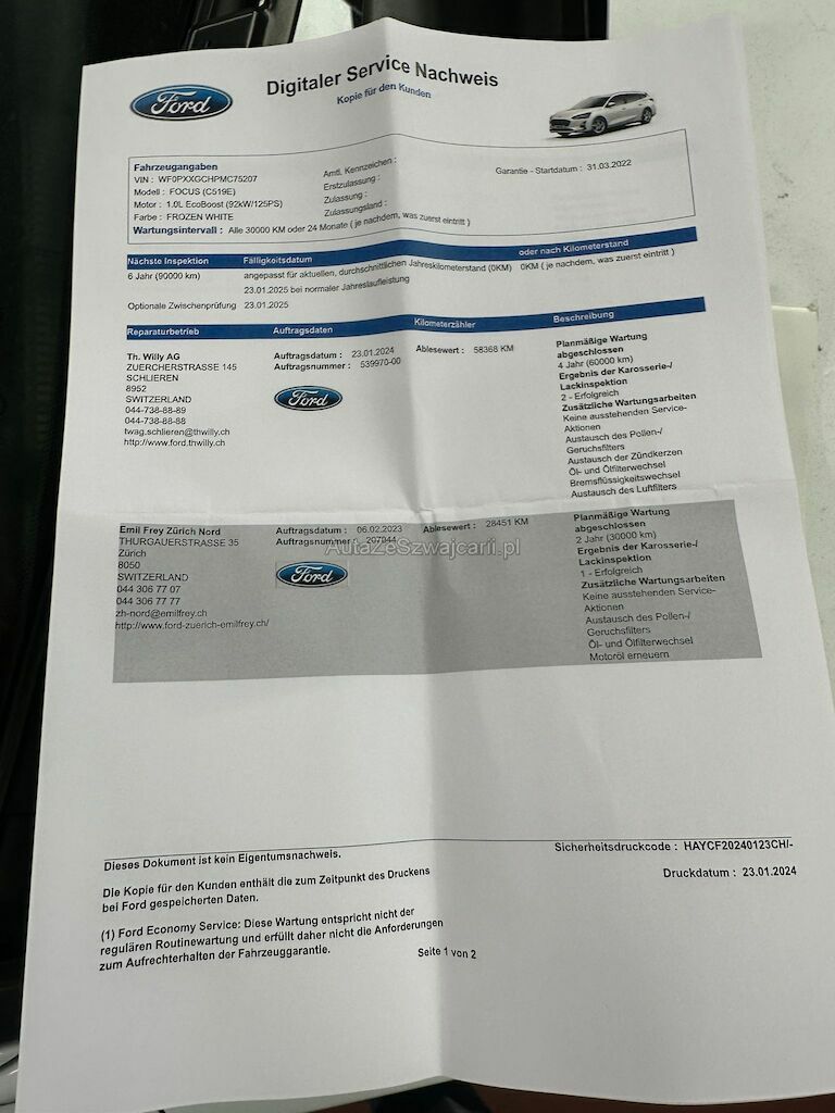 - Letzter Serviceeintrag bei 58'368 Km