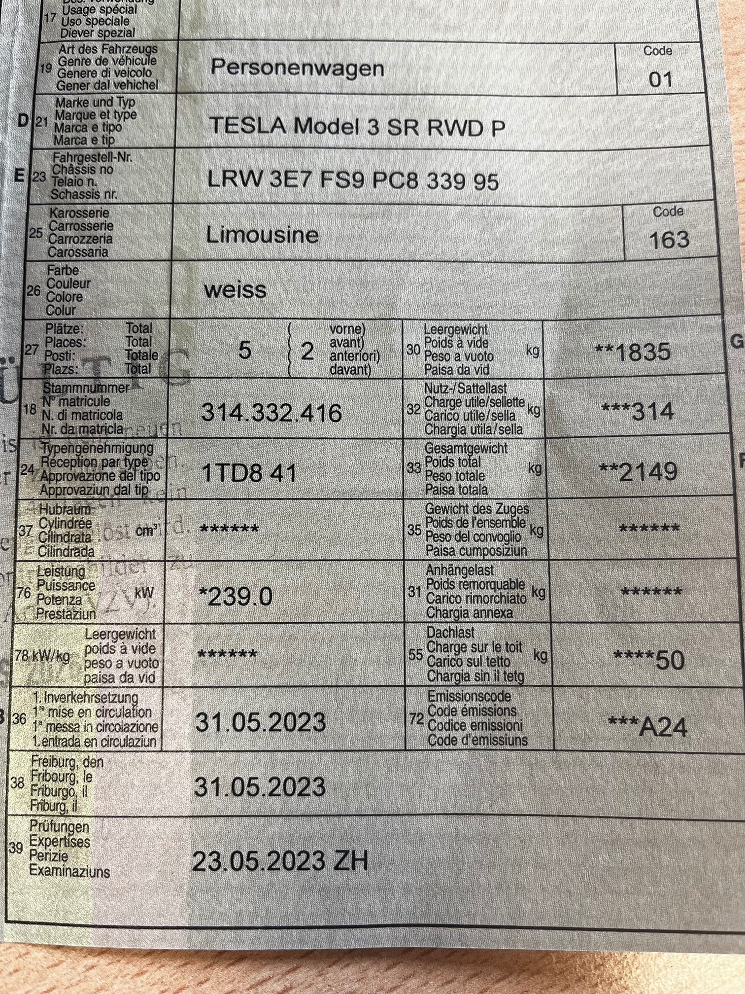 | Kommentar | Model 3 SR RWD P Winterräder leicht angefahren ansonsten Aussen wie Innen wie neu, inklusive Tesla Garantie auf die Hochvoltbatterie und den Elektroantrieb |