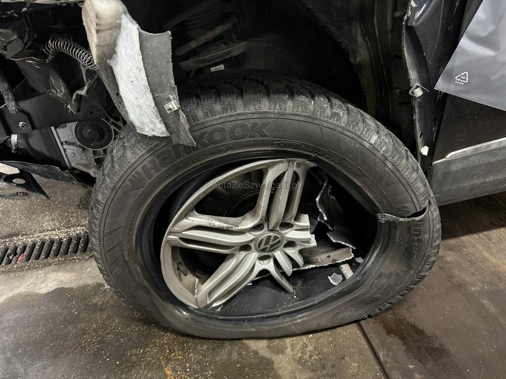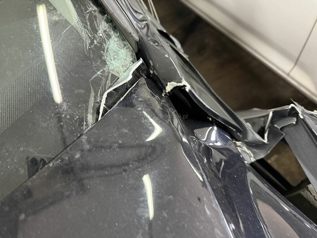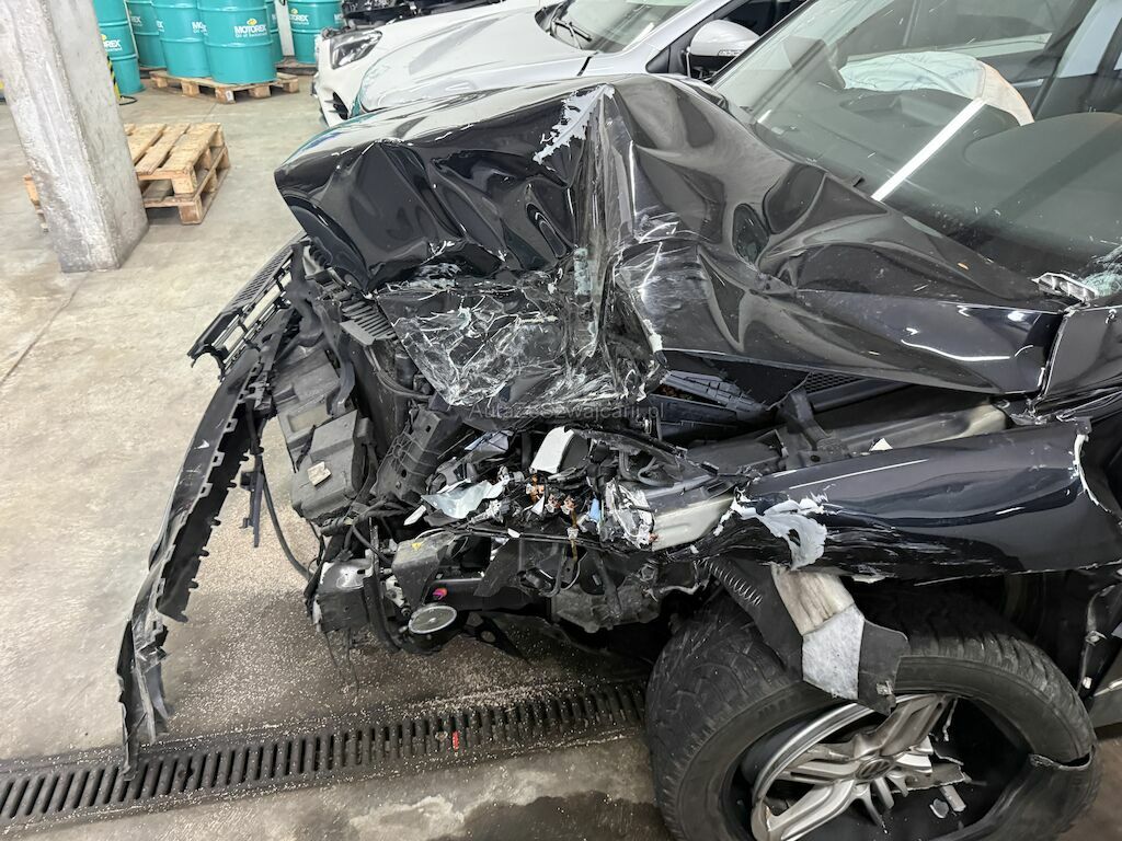 Anprall vorne links. Dabei wurde die gesamte Front bis zum Radhaus inkl. Längsträger und Radaufhängung beschädigt.
