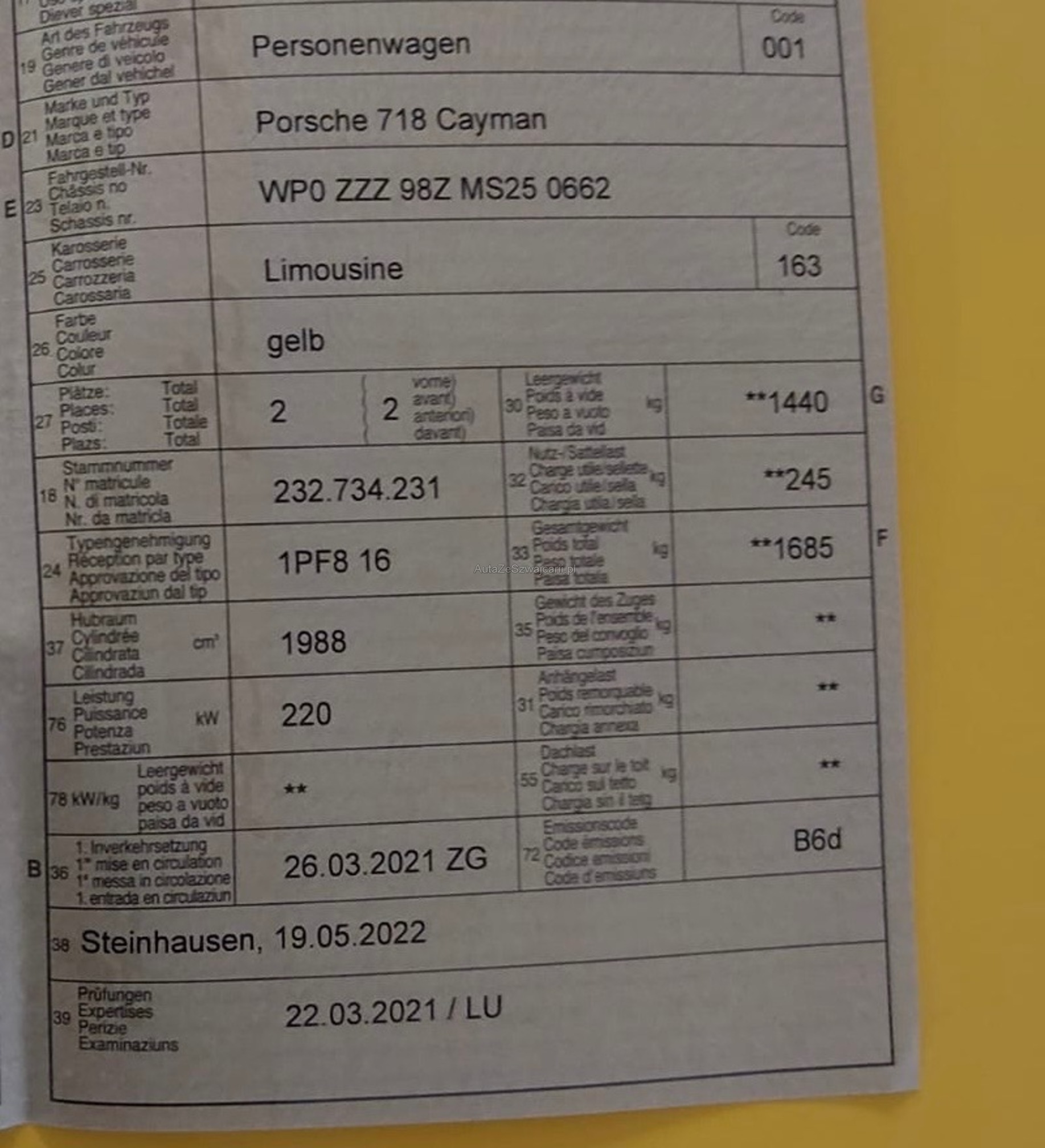 | Kommentar | Hat ein Gewindefahrwerk montiert, ist eingetragen & original Fahrwerk ist vorhanden. 18 Zoll Räder von Erstauslieferung ebenfalls vorhanden. |