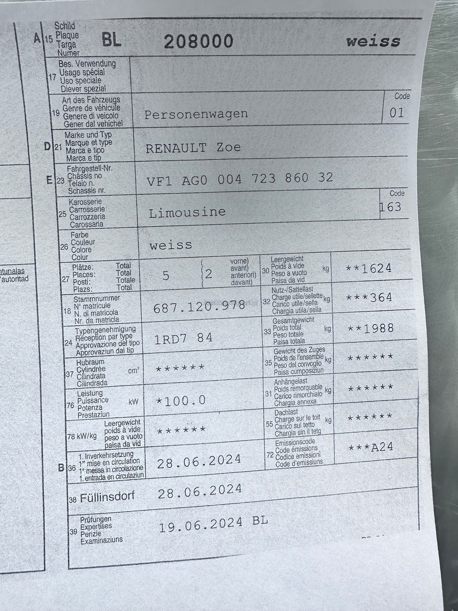 | Kommentar | Renault Zoe Iconic Kundenwunsch ca 18000.- km im sommer bis 350 Winter bis 300 |