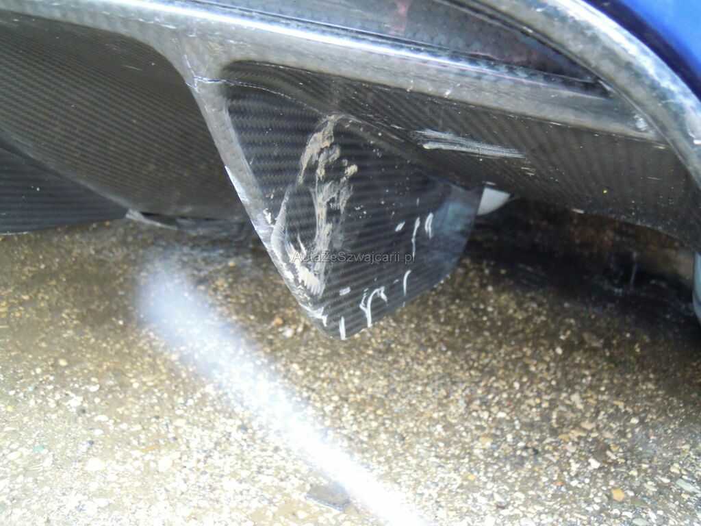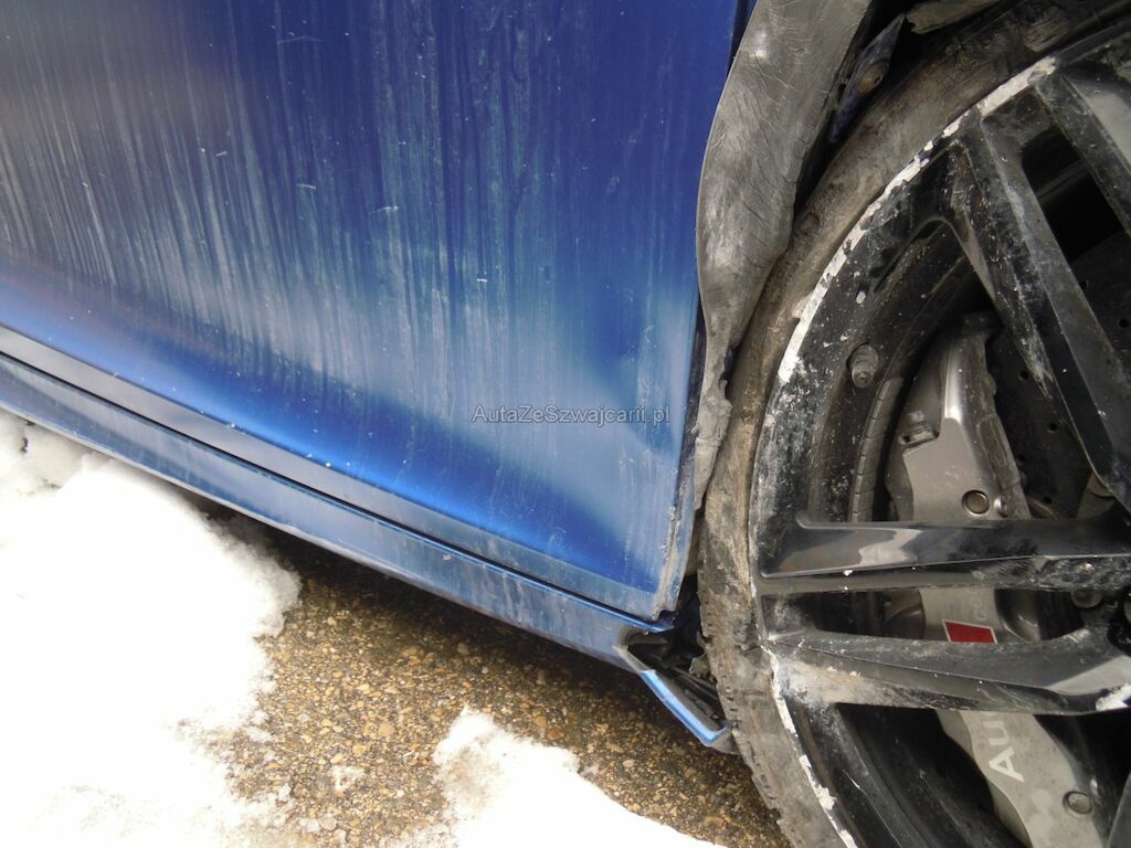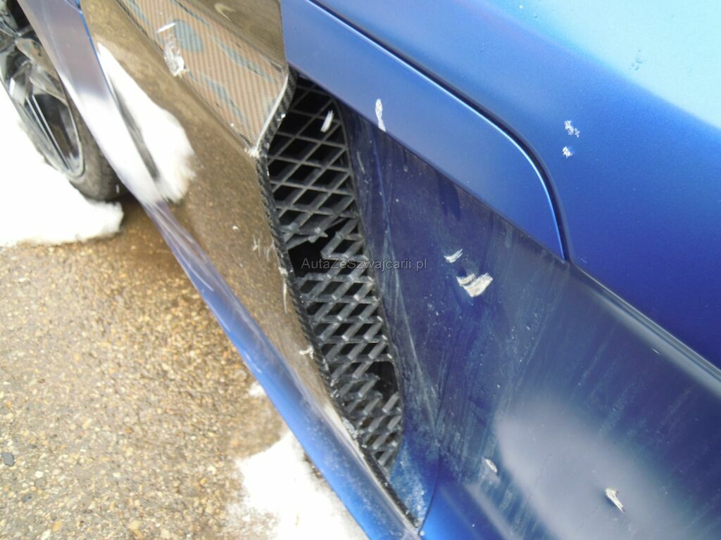 Dommage latéral droit: Pare-chocs, spoiler inférieur, phare, grilles, pare-brise, baie pare-brise, jante avant, disque de frein cassés, radiateur, condenseur enfoncés, traverse avant droite pliée, capot déformé, aile avant arrachée, suspension avant fortement endommagée, porte déformée, ceintrée et griffée, éclat sur la coque rétroviseur, revêtement de bas de caisse cassé et griffé, panneau latéral arrière droit griffé et délaminé, aile arrière et montant pare-brise griffés, jante arrière fortement griffée intérieur et extérieur, suspension arrière endommagée, diffuseur arrière griffé et délaminé, caches soubassement griffés. Soubassememt du véhicule sous réserve.