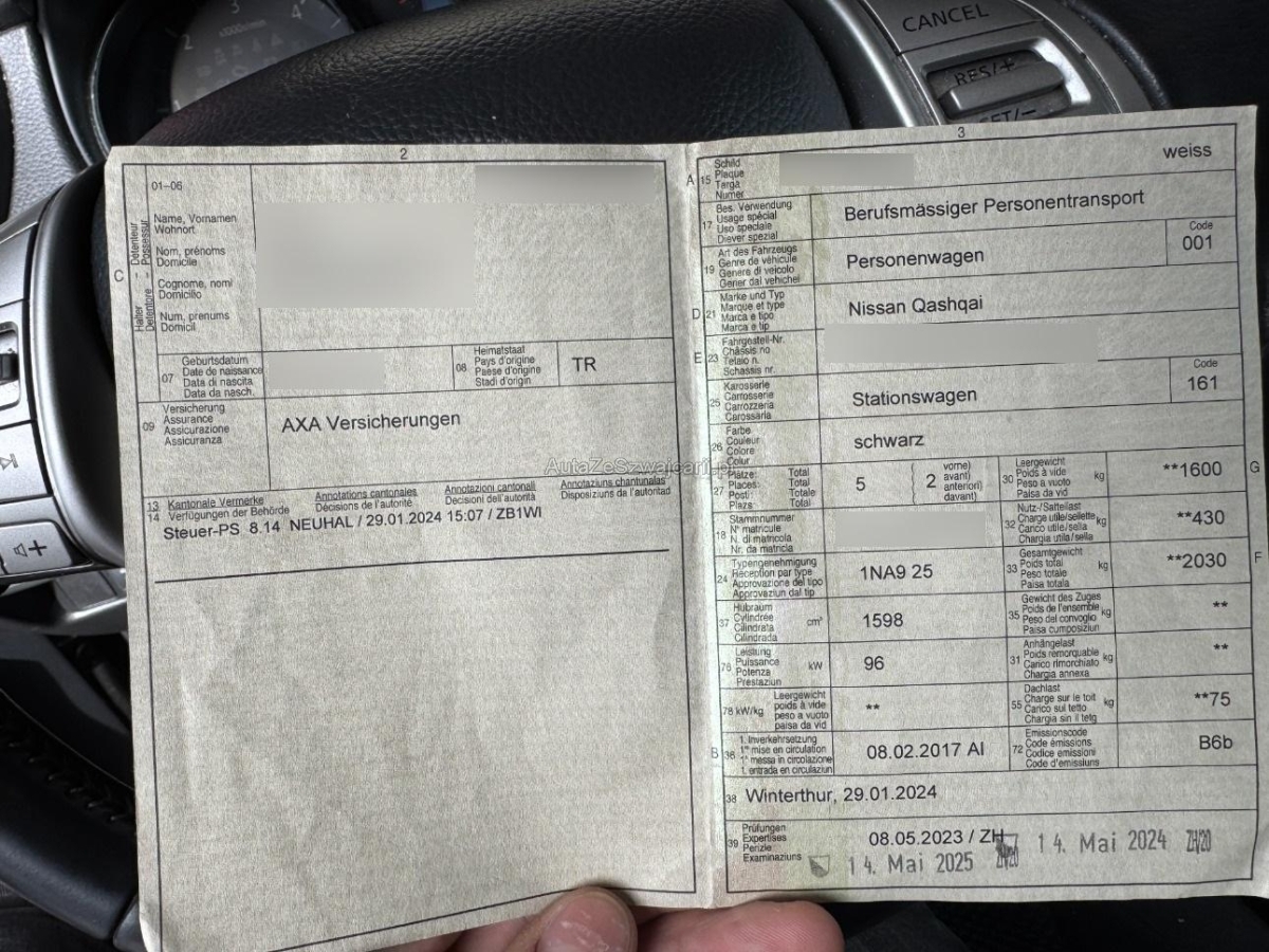 | Fahrzeugausweis | Vorhanden |