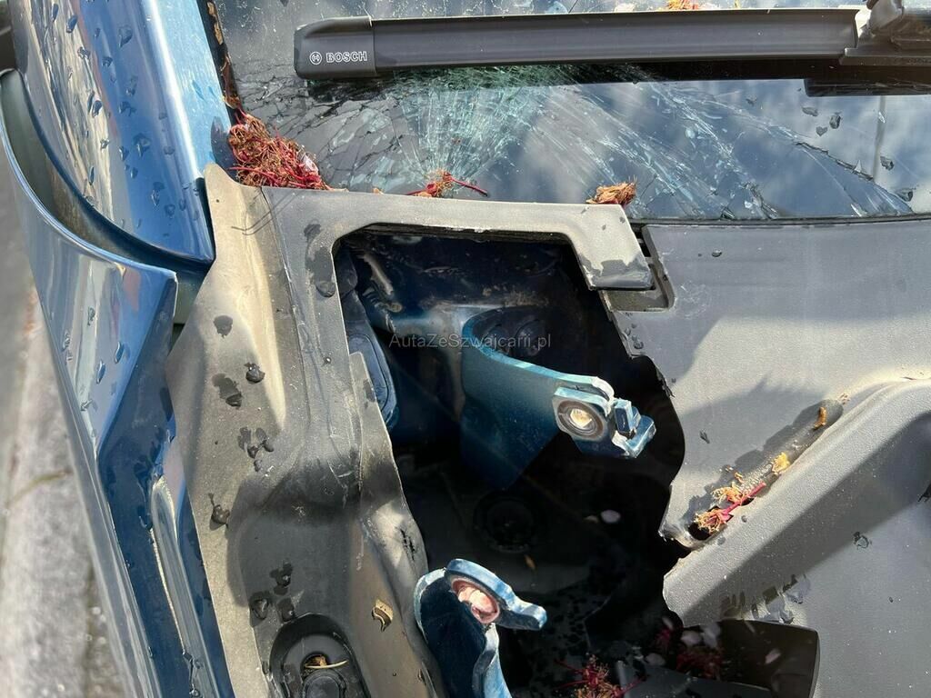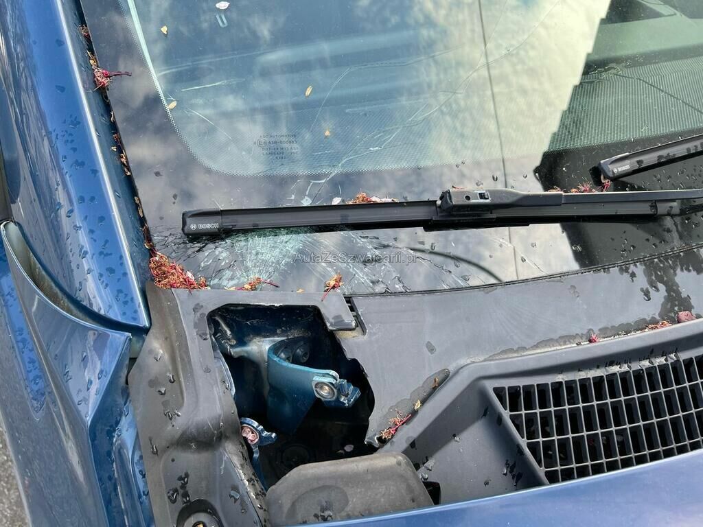 Motorhaube, Frontscheibe, Stirnwand, Stossstange, Kotflügel und Fahrwerk vorne rechts beschädigt.
