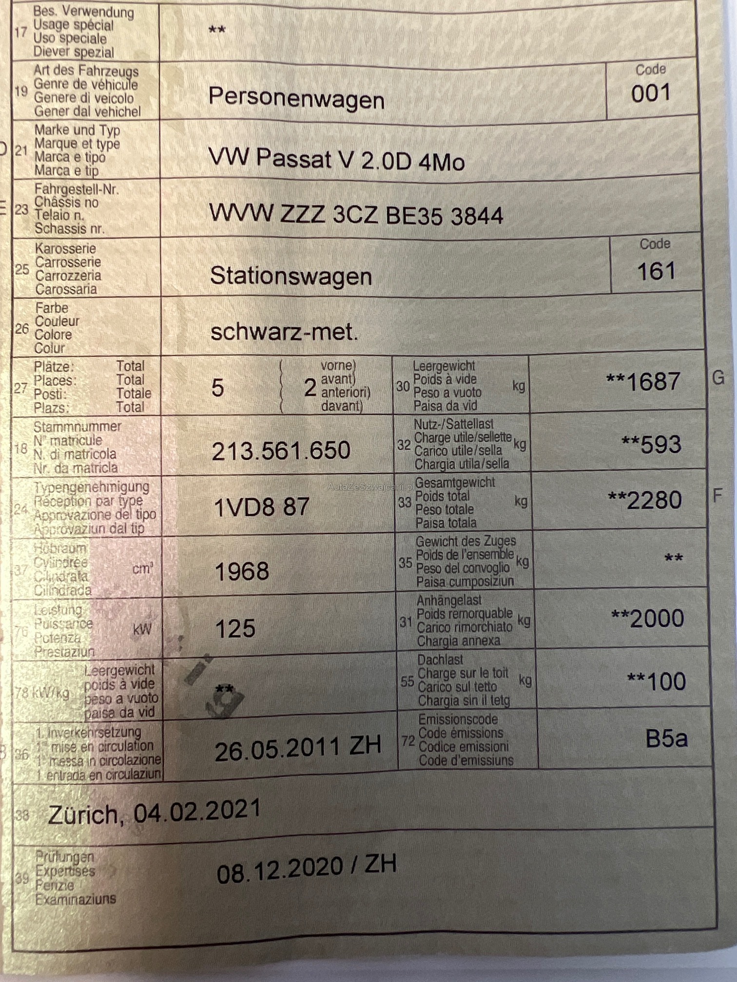 VW Passat V 2.0D 4Mo