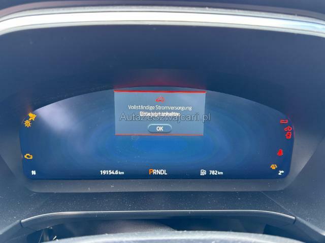 | Condition_and_Equipment | Zustand Fahrzeug ist NICHT fahrbar. Motor startet nicht, Ursache unbekannt. Hersteller- und Gewährleistungsbedingungen Die Fahrzeuggarantie oder Gewährleistung wird möglicherweise nicht vom Hersteller fortgeführt Hochvoltfahrzeug Hochvoltsystem ist abgeschaltet und spannungsfrei --- Links Linke Seite beschädigt. Front Front links eingedrückt. Frontblech/Maskenblech eingedrückt. Fahrzeugvorbau nach rechts verschoben. Motor Alle Kühler vorne sind eingedrückt. Elektrik Kabelstränge verbrannt, beschädigt, abgerissen. Innenraum Armaturenbrett ist beschädigt. Gurtstraffer ausgelöst. Sonstige Schäden Div.Carrosserie Teile sind leicht beschädigt. --- Serienaustattung Airbag Fahrer und Beifahrerseite Sitzheizung vorne Elektrische Fensterheber vorne + hinten Aussenspiegel elektrisch verstellbar und heizbar Seitenairbag Fahrer und Beifahrerseite Nebelscheinwerfer Innenspiegel automatisch abblendbar Kopfairbag vorne und hinten Scheibenwischer mit Regensensor Sportsitze vorne Deaktivierung Beifahrerairbag Park-Pilot Lichtsensor Bremsassistent EBA Ambientebeleuchtung Lenksäule mit Höhen- und Längseinstellung Servolenkung elektrisch Zwei Zonen-Klimaautomatik Rückfahrkamera Isofix-Vorbereitung Rücksitze aussen Garantie 3 Jahre/ 100'000 km Aussenspiegel elektrisch anklappbar inkl. Bodenleuchten Steckdose 12 V im Gepäckraum Dachreling silber Dachspoiler in Wagenfarbe Spurassistent Fussmatten vorn und hinten Rücksitzbank verschiebbar ABS und EBD Elektr. Bremskraftverteilung Reifen-Pannenset Lendenwirbelstütze Fahrer- und Beifahrersitz ESP und Elektronische Traktionskontrolle TCS Geschwindigkeitsregler und - begrenzer Vordersitze manuell verstellbar Reifendruck-Sensoren TPMS Fernbedienung am Lenkrad Ford-Easy-Fuel System/ Fehlbetankungsschutz Leichtmetallfelgen 17" 5x2-Speichen LED Tagfahrlicht Hill Hold Control Virtuelle Instrumententafel/ TFT-Bildschirm 12.3" Rücksitzlehne geteilt umklappbar LED Rückleuchten KeyFree System Spurhalteassistent LDW Keine Gewähr auf die Angaben der Serienausstattungen Pre Collision System Navigationssystem mit DAB+ Notrufassistent Fussgängererkennung Lenkrad in Kunstleder Sonderausstattung Metallic-Lackierung Dunkelgetönte Scheiben hinten Pack Fahrassistenz Pack Winter 2 Sonstige Ausstattung und Zubehör Anhängerkupplung, Winterräder |
