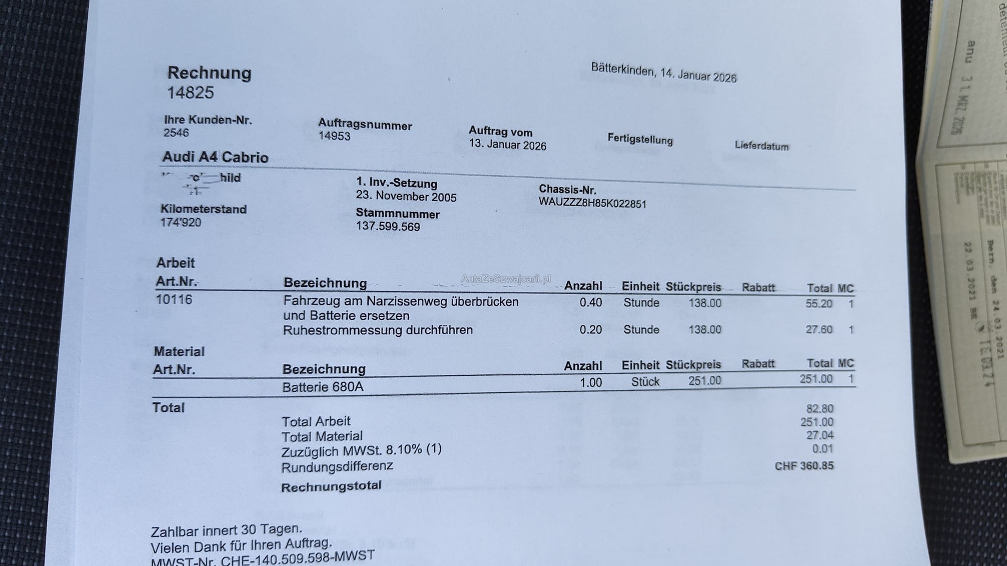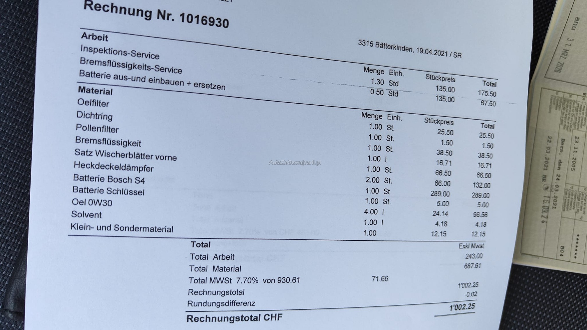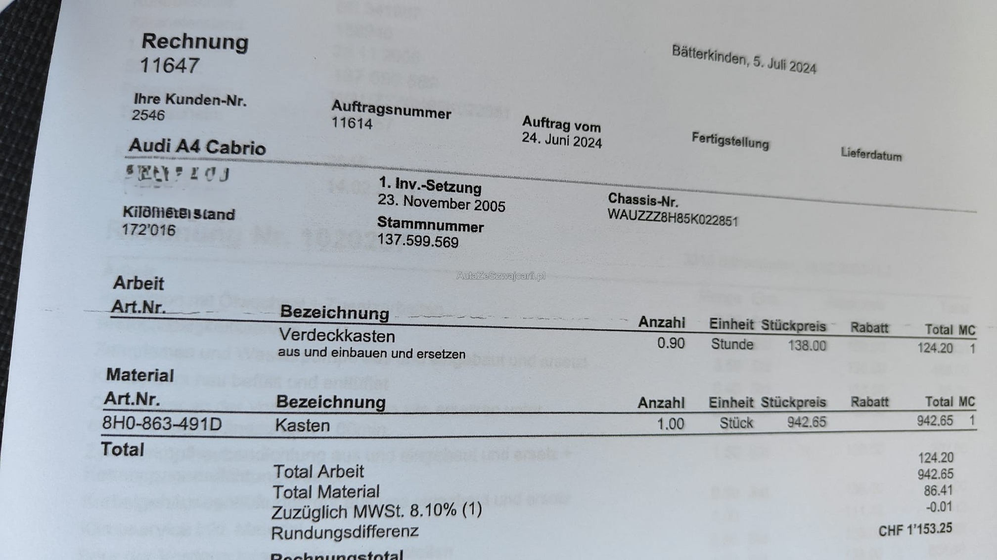| Kommentar | - Geräusch Vorderachse beim Lenken - Div. kleinere Dellen und Kratzer vorhanden - Fahrzeugbereifung, Fahrzeugzustand und Ausstattung gemäss Bildern. Unsere Fahrzeuge wurden keiner Prüfung unterzogen, Fahrzeugkauf auf eigenes Risiko ab Platz ohne Nachwährschaft. Das Gewährleisten für Sachmängel wird weggegangen. |