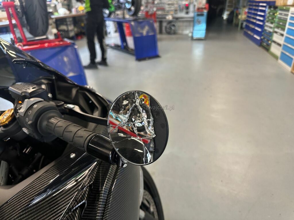 Beschädigung von Spiegel, Lenker, Seitenverkleidung, Rahmen, Auspuff und diversen Anbauteilen.