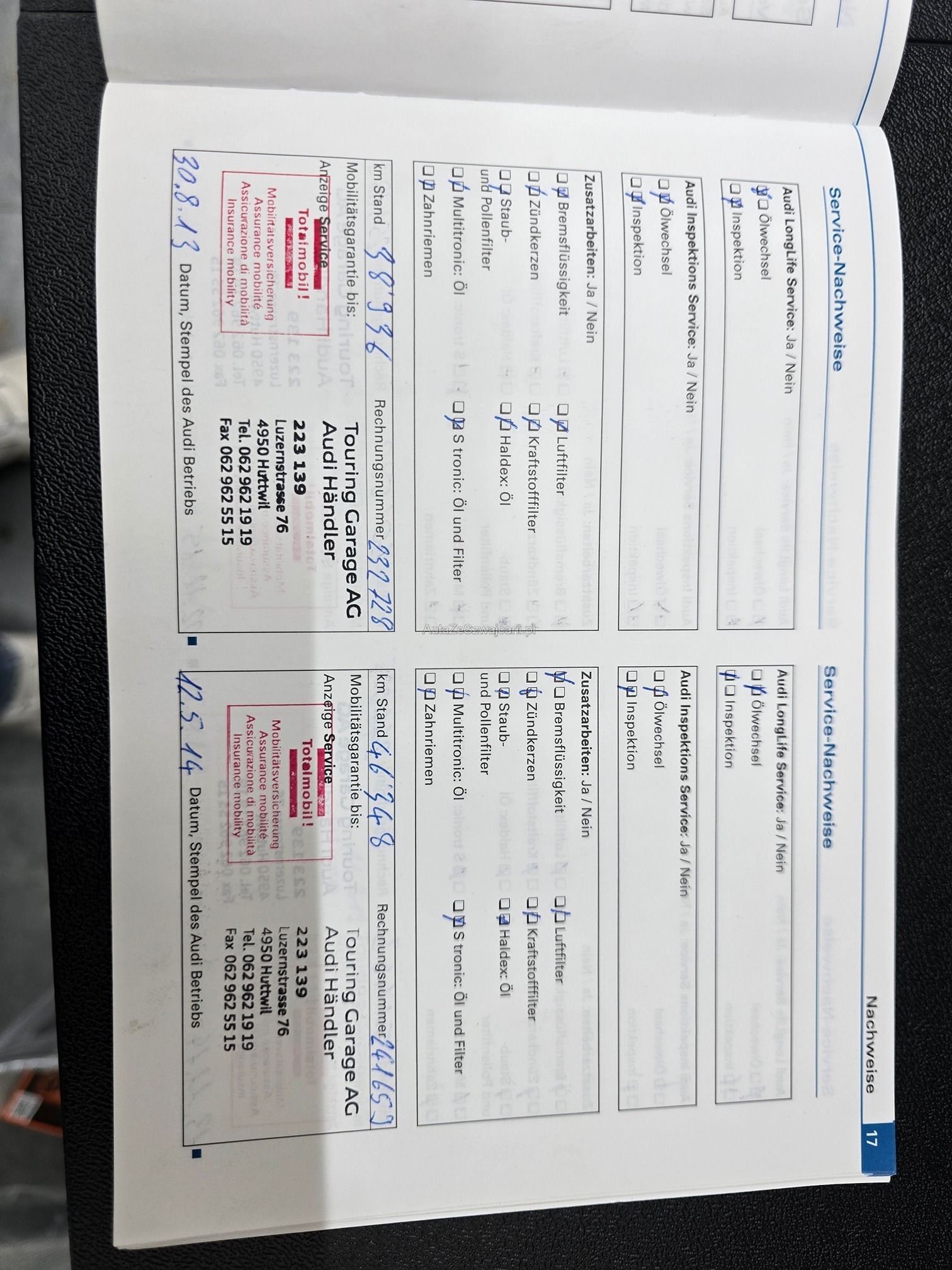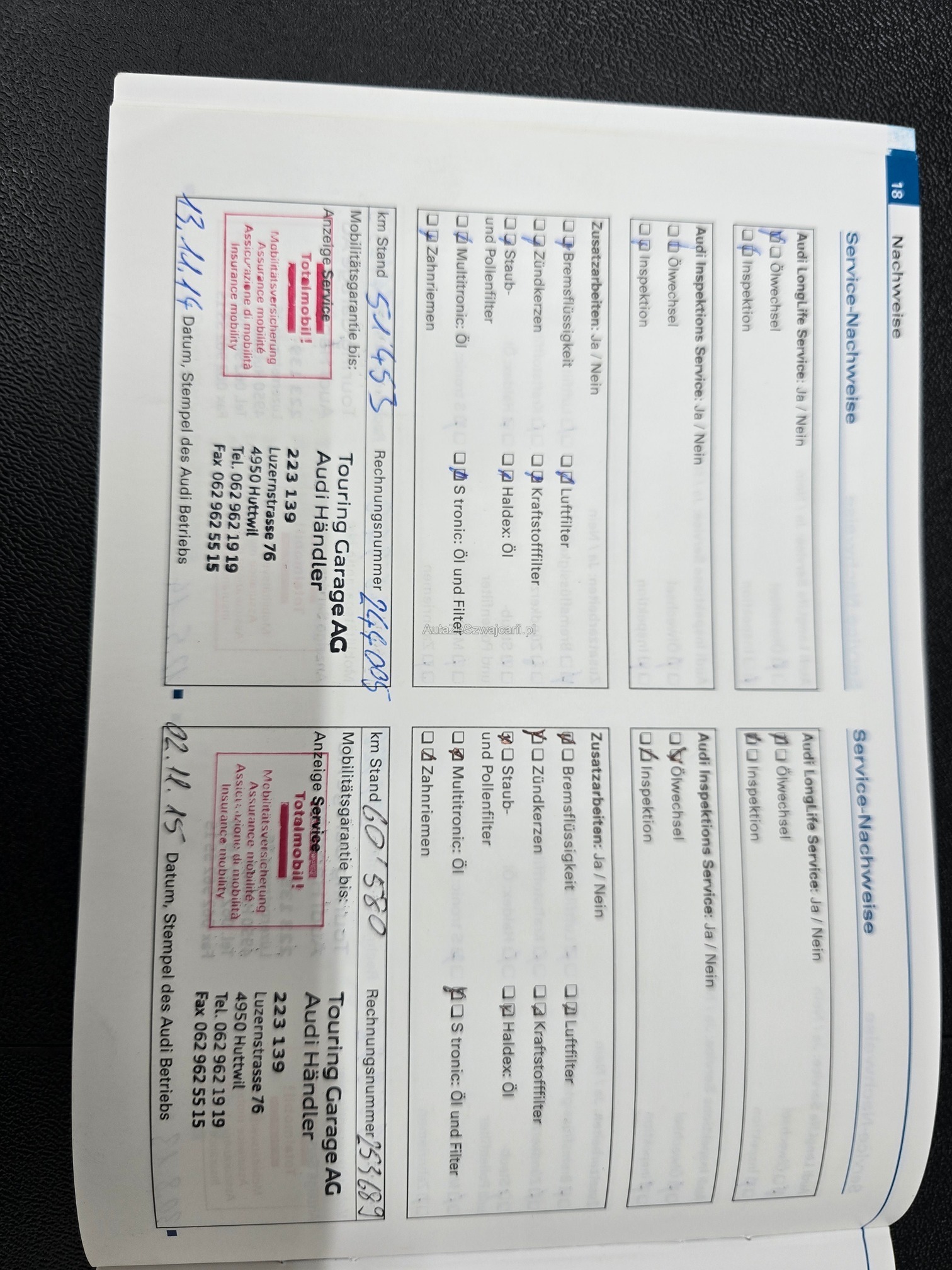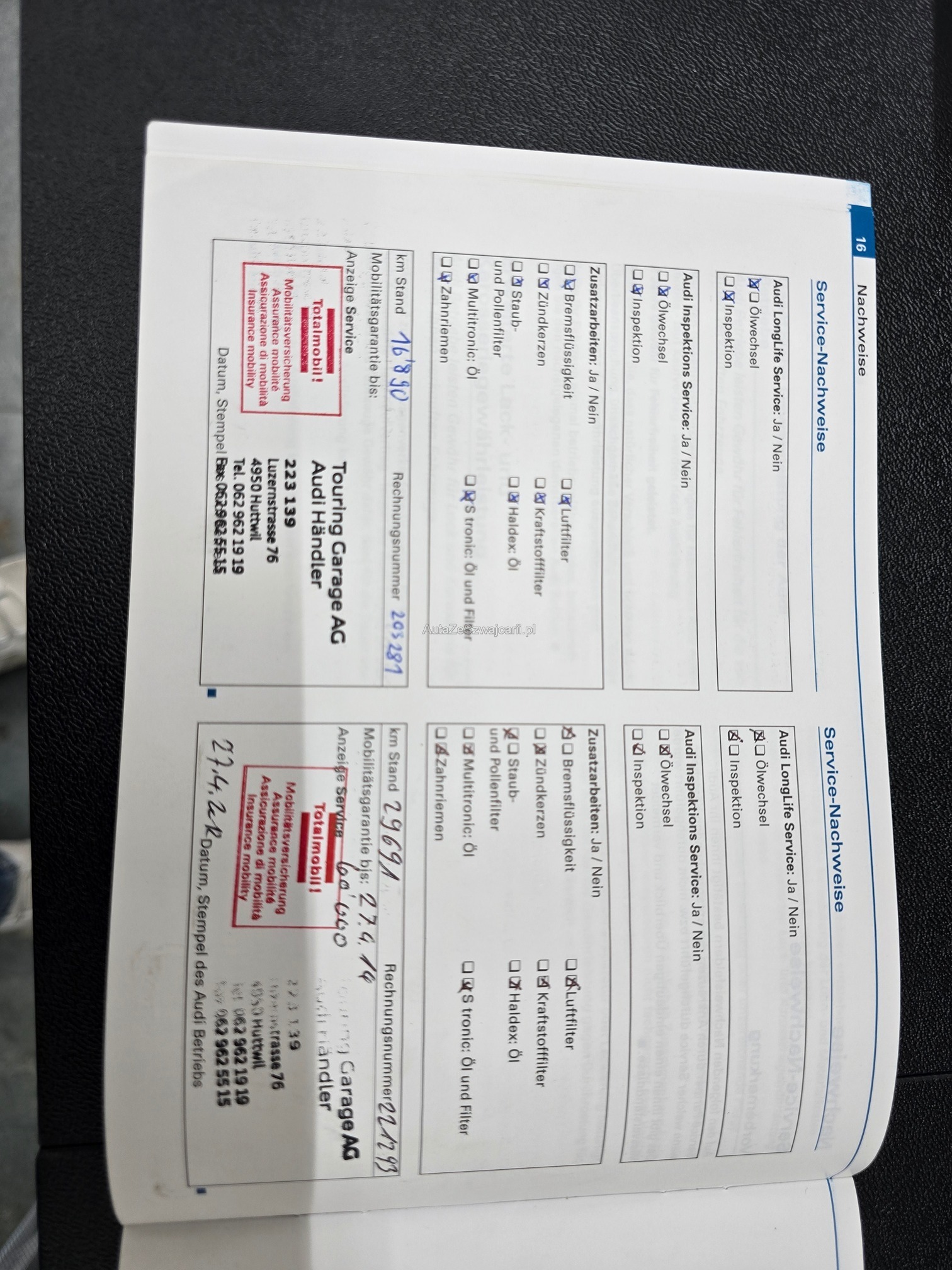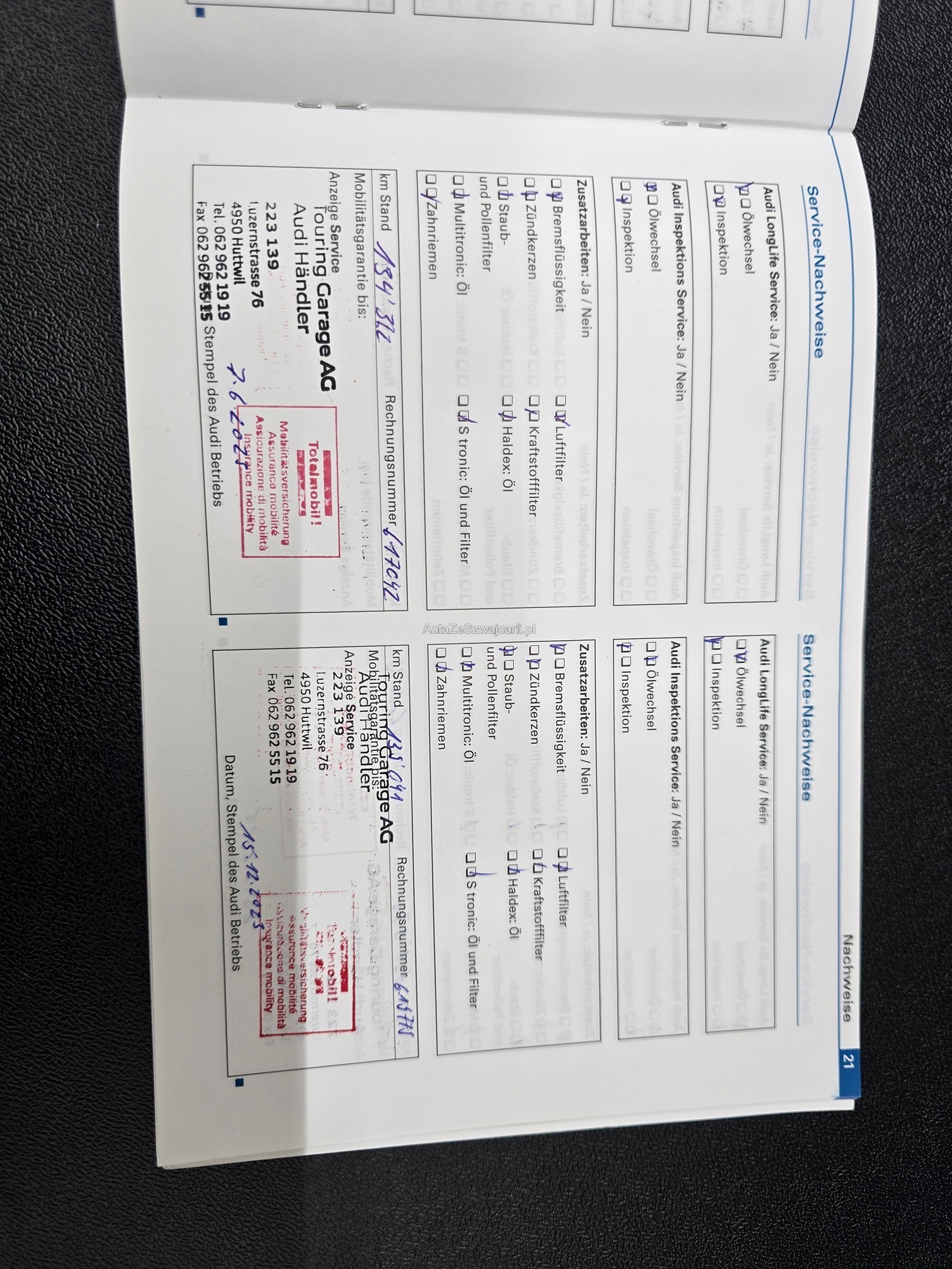 | Kommentar | Aus 1.Hand unfallfrei und keine Nachlackierungen. Servicegepflegt. Ölverbrauchsproblem wurde auf Garantie bei ca. 70'000km behoben. Keine Kratzer oder Beulen. Kaum Steinschläge. 20 Zoll Sommerfelgen mit Pneu. Es wurde kein Werkstatttest gemacht. Jegliche Gewährleistung wird wegbedungen, insbesondere sind Wandelung und Minderung ausgeschlossen. Die Verantwortung liegt beim Käufer. Rückgabe ausgeschlossen. |