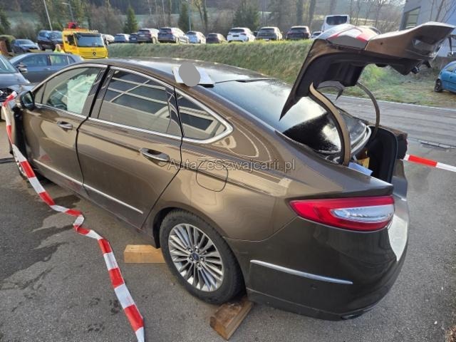 | Condition_and_Equipment | Zustand Fahrzeug muss transportiert werden (Höhe und Breite beachten). Schlüssel Nur ein Schlüssel vorhanden. --- Links Anstoss links im Bereich der A-Säule. Schweller links ist eingedrückt. Tür vorne links ist eingedrückt. Rechts Anstoss rechts im Bereich der A-Säule. Schweller rechts ist eingedrückt. Tür vorne rechts ist eingedrückt. Front Front eingedrückt. Kotflügel vorne rechts und links eingedrückt. Motorhaube eingedrückt. Frontblech/Maskenblech eingedrückt. Radhaus vorne rechts und links eingedrückt. Längsträger vorne rechts und links gestaucht. Motor Risiko Motor. Risiko Getriebe. Risiko Differenzial. Motoranbauteile beschädigt. Alle Kühler vorne sind eingedrückt. Öl-/Kraftstoffaustritt vorhanden Achse Vorderachse ist beschädigt. Risiko Hinterachse. Risiko Lenkung. Innenraum Beide Airbags sind ausgelöst. Seitenairbag rechts ausgelöst. Seitenairbag links ausgelöst. Armaturenbrett ist beschädigt. Gurtstraffer ausgelöst. Glas Windschutzscheibe ist gerissen. Sonstige Schäden Div.Carrosserie Teile sind leicht beschädigt. Weitere Beschädigungen Schaden, Ausstattung & Zustand gemäss Bilder !!! Eventuell wird ein Sommerrädersatz mit abgegeben. --- Serienaustattung Airbag Fahrer und Beifahrerseite Sitzheizung vorne Fahrersitz elektrisch verstellbar mit Memory Elektrische Fensterheber vorne Metallic-Lackierung Seitenairbag Fahrer und Beifahrerseite Heizbare Frontscheibe Nebelscheinwerfer Elektrische Fensterheber hinten Lederlenkrad mit Lederschaltknauf Park-Distanz-Sensor vorne + hinten Lendenwirbelstütze Fahrersitz ESP/ TCS Isofix-Kindersitzbefestigung Lendenwirbelstütze Beifahrersitz Ambientebeleuchtung Leichtmetallfelgen 18" Doppelspeichen Windowbags vorne + hinten Zwei Zonen-Klimaautomatik Rückfahrkamera Tempomat mit Geschwindigkeitsbegrenzer Garantie 5 Jahre/ 100'000 km Passformteppiche vorne und hinten Knieairbag Fahrer ABS und EBD Elektr. Bremskraftverteilung Automatischer Scheibenwischer mit Regensensor Aussensp. el. verst./ heizb. u. anklappbar/ Einstiegsbel. Fernlichtassistent Vollleder Armaturenbrett in Leder Reifendruck-Sensoren TPMS Reifen-Reparatur Set Rücksitze umklappbar 60/40 Spurhalteassistent LDW Lichtautomatik Ford Servicepack 5 Jahre/ 5 Services/ 100'000 km Keine Gewähr auf die Angaben der Serienausstattungen Keyless Start Parkassistent Verkehrsschild-Erkennungssystem Adaptive LED-Scheinwerfer Navigationssystem Sony Premium SD mit DAB+ Keyless Start + Keyless Entry Dachhimmel hell Sonderausstattung Adaptiver Tempomat ACC Lenksäule elektrisch verstellbar mit Memory Getönte Scheiben hinten Sicherheitsgurte mit integriertem Airbag hinten Kopfstützen vorne verstellbar Pack Technology/ Comfort |
