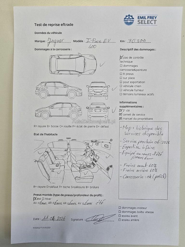 | Information | 2 clés Map + historique des service disponible Service prochain 06.2026 Expertise à faire Equipé en roues d'été pneus 6 mm Freins avant 60 % Freins arrière 60 % Carrosserie : ok ( polische ) Pas de contrôle technique (essai en route) effectué 2 keys Map + service history available Next service 06.2026 Expertise to be done Equipped with summer wheels with 6 mm tires Front brakes 60 % Rear brakes 60 % Bodywork : ok (polished ) No technical inspection (test drive) carried out |