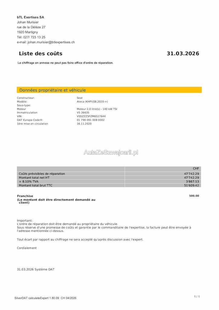 | Reparaturkosten | 51'609.40 CHF |