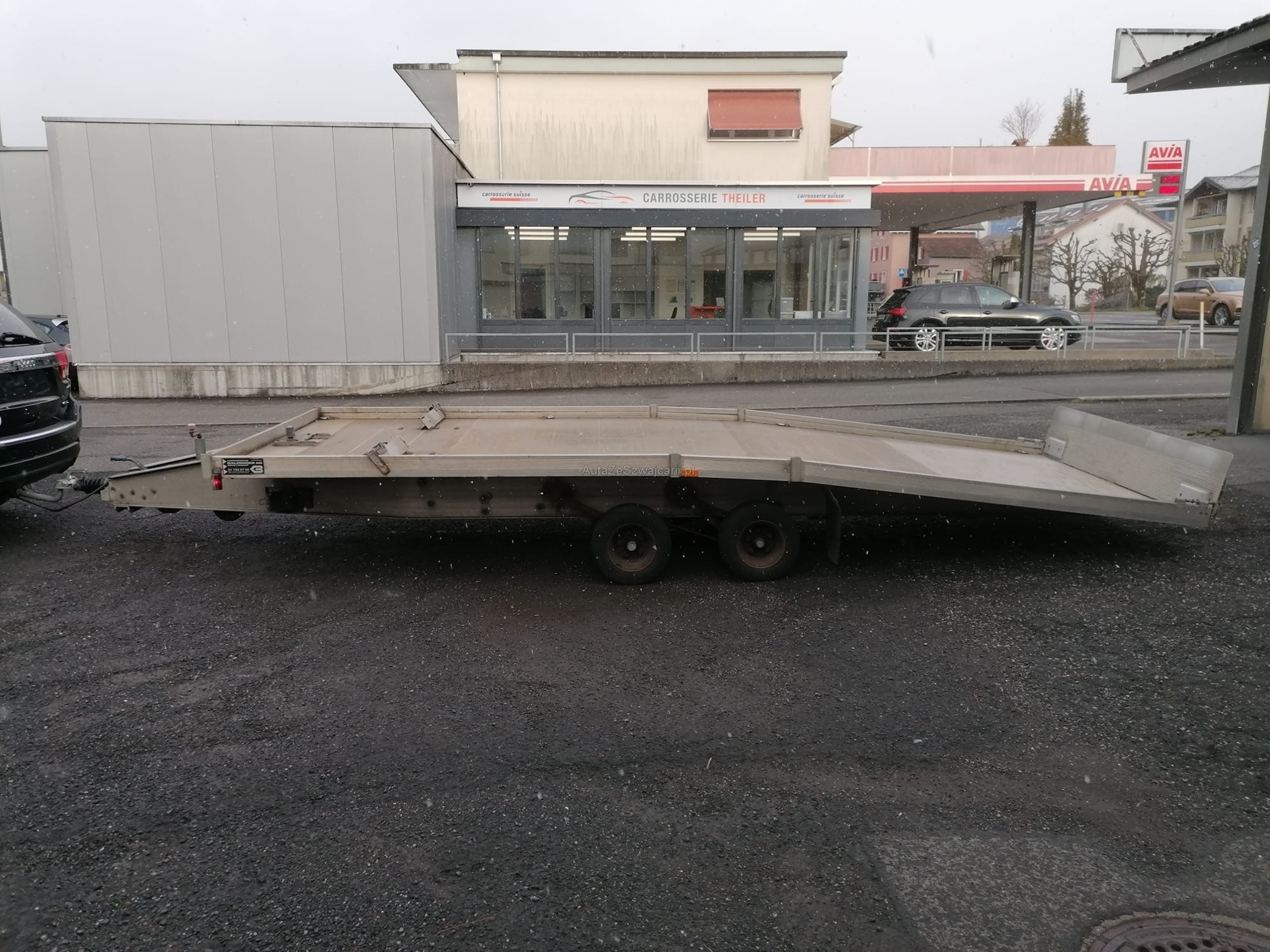 | Kommentar | Baldinger Fahrzeugtransport-Absenkanhänger Baldinger 3000 28.04.2003 innert Sekunden absenkbar und anhebbar 5m Ladefläche 2m breit Beleuchtung, Elektrik in gutem Zustand Elektronische Winde (Abnehmbar) ist mit dabei inkl. Fernbedienung 2'230 Kg Nutzlast 3'000 Kg Gesamtgewicht Gewährleistungen, Wandlungen oder Minderungen sind Ausgeschlossen, gemäss Gesetzgebung. Ab Platz für Export oder Aufbereitung! Marke stimmt im Inserat nicht da die Korrekte Marke nicht angewählt werden kann. Dies ist hier erwähnt und somit kein Rücktritt Grund. Wird im Kundenauftrag verkauft und inseriert |