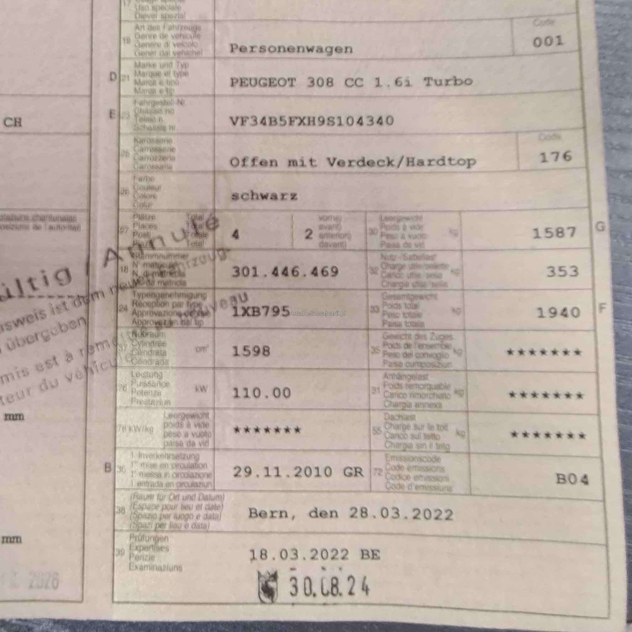 | Kommentar | -Es wurde KEIN Werkstatttest durchgeführt -Fahrzeug hat noch Rest MFK -Auspuff leicht undicht -Chrom löst sich von den Innentürgriffen ab -Innenspiegel wird langsam blind -Lack auf Motorhaube und Dach ist nicht schön -minimaler Hagelschaden -Die Rücklichter haben Kondenswasser -Türrückhalteband links knackt beim öffnen -Am Fahrzeug wurde kein Werkstatttest gemacht (Für sichtbare oder nicht sichtbare Mängel wird nicht gehaftet). Wir testen & kontrollieren nicht alle Funktionen vom Fahrzeug. Das Risiko liegt somit vollumfänglich beim Käufer. Um Missverständnisse zu vermeiden kann das Fahrzeug auf Voranmeldung besichtigt & getestet werden, sollten Sie davon bewusst kein Gebrauch machen dann liegt die Verantwortung bei Ihnen. Nachdem der Höchstbietende den Zuschlag erhalten hat, gibt es keine Nachverhandlung, auch wenn nicht deklarierte Mängel zum Vorschein kommen sollten. Ab Platz ohne Garantie, Wandelung und Minderung werden wegbedungen. |