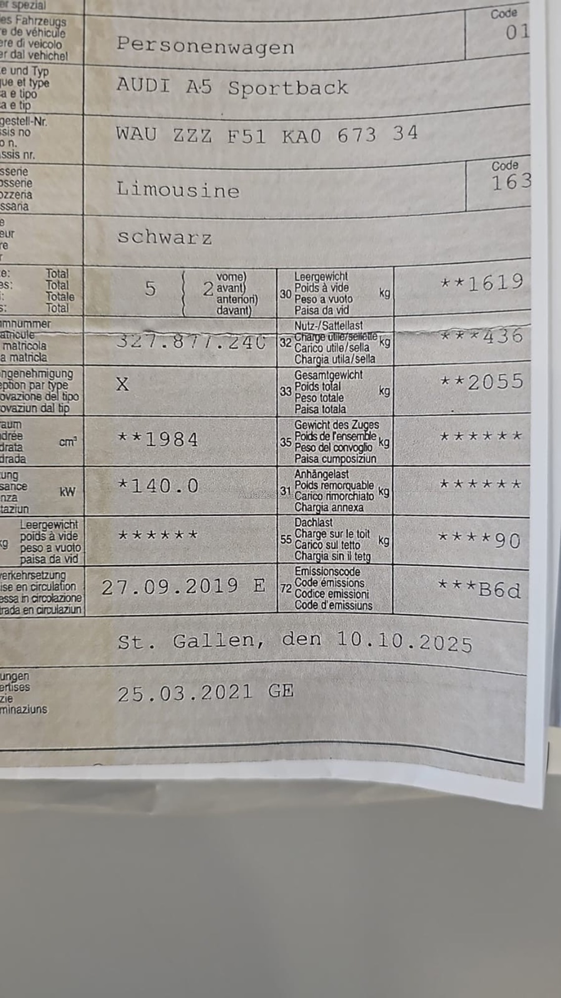 | Kommentar | Eintausch Fz Am Fahrzeug wurde keine Zustandsanalyse durchgeführt. Fahrzeug läuft und fährt normal, wir haben alle Kratzer fotografiert was wir gesehen haben, für nicht gesehen Schäden wird nicht gehaftet, ab Platz ohne Garantie. |
