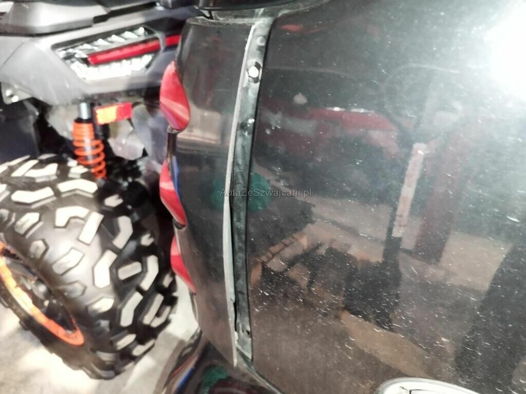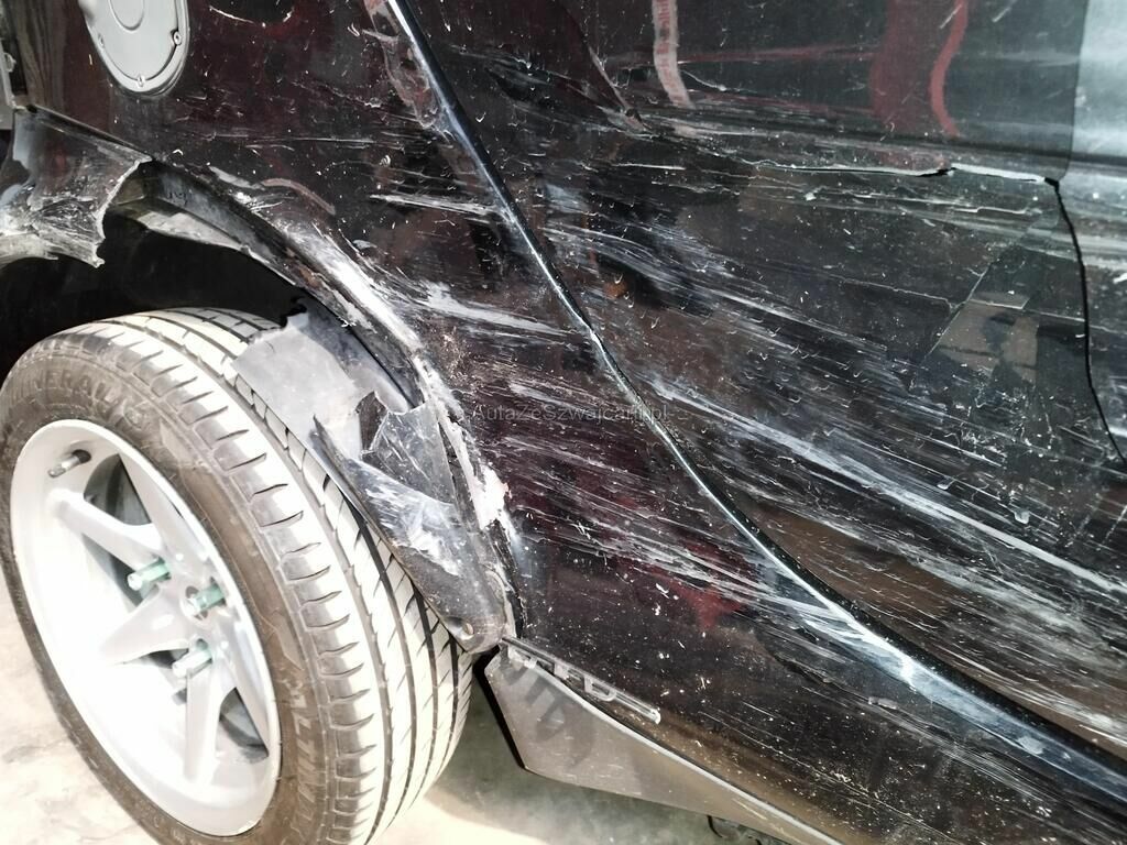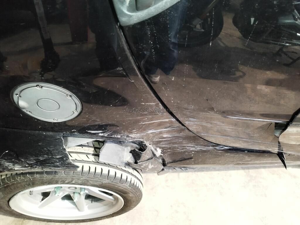 Der Kotflügel hinten rechts ist gerissen, die Seitenwand hinten rechts ist deformiert, die Türe rechts ist gerissen.