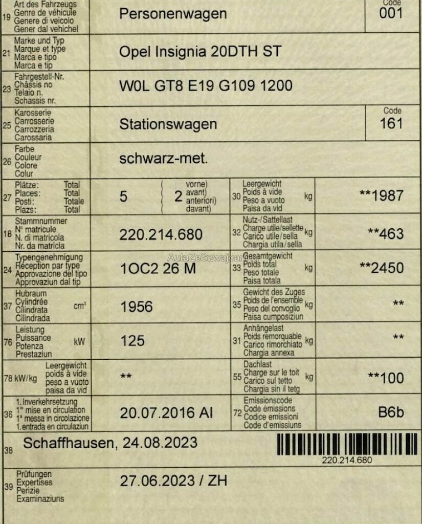| Typenschein | 1OC226M |