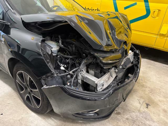 | Condition_and_Equipment | Demontage Persönliche Gegenstände oder Ladegut im Fahrzeug werden entfernt. Zustand Fahrzeug muss transportiert werden (Höhe und Breite beachten). Bereifung Fahrzeug wird mit Winterräder abgegeben. Schlüssel Nur ein Schlüssel vorhanden. --- Links Linke Seite beschädigt. Rechts Rechte Seite beschädigt. Front Fussgängerschutz ausgelöst. Front eingedrückt. Frontblech/Maskenblech eingedrückt. Längsträger vorne rechts und links gestaucht. Motor Risiko Motor. Risiko Getriebe. Alle Kühler vorne sind eingedrückt. Elektrik Kabelstränge verbrannt, beschädigt, abgerissen. Sonstige Schäden Div.Carrosserie Teile sind leicht beschädigt. Hagel Hagelschaden leicht. --- Serienaustattung Airbag Fahrer und Beifahrerseite Sitzheizung vorne Elektrische Fensterheber vorne Servolenkung Nebelscheinwerfer Lederlenkrad Elektrische Fensterheber hinten ABS und EBV Elektr. Bremskraftverteilung Reifendruck-Kontrollsystem RDK Deaktivierung Beifahrerairbag Aussenspiegel elektrisch verstellbar/ heizbar und anklappbar Isofix-Kindersitzbefestigung Not-Bremsassistent mit Aktivierung der Warnblinkanlage Multimedia-System Mittelarmlehne vorne mit Staufach Seitenairbags vorne ESP/ ASR/ CSV Tempomat mit Geschwindigkeitsbegrenzer Ersatzrad Dunkle Verglasung hinten Regen- und Lichtsensor Keyless-Drive Hands-free Höhenverstellbarer Fahrersitz HSA Berganfahrassistent Rücksitzlehne geteilt 1/3 oder 2/3 / umklappbar Klimaanlage automatisch inkl. Pollenfilter Vorausrüstung für Alarm Stop + Start System LED-Scheinwerfer LED Tagfahrlicht Leichtmetallfelgen 17" schwarz Keine Gewähr auf die Angaben der Serienausstattungen Personalisierung innen Personalisierung aussen Einparkhilfe 360° inkl. Rückfahrkamera und Park Assist Pack Luxe Pack Visibilite R-Link Evolution Sitzbezüge in Velours/ Kunstleder Pack Easy Sonderausstattung Metallic-Lackierung Audiosystem BOSE |
