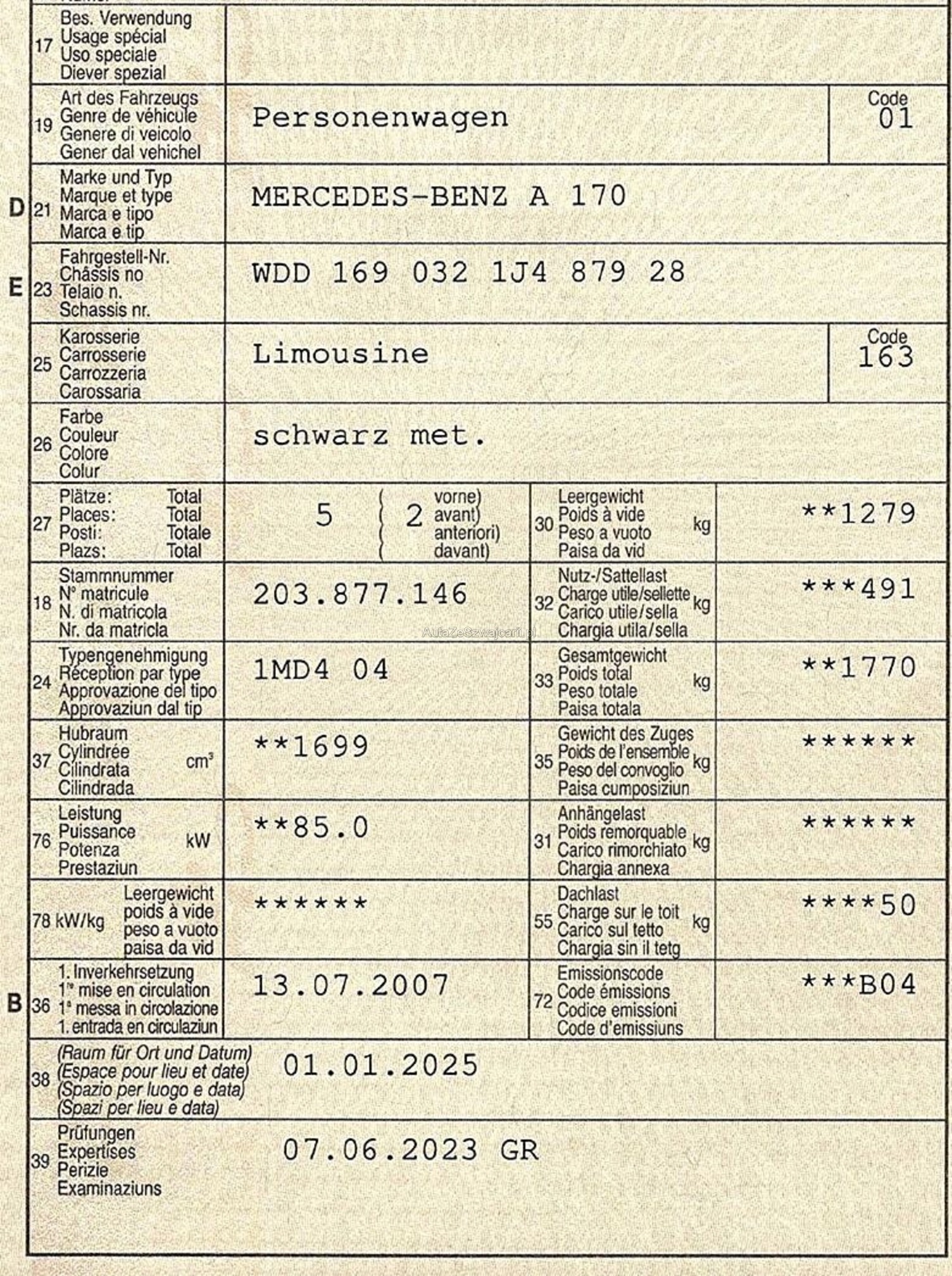 | Kommentar | Fahrzeug läuft problemlos, hat aber diverse Roststellen. Das Auto war nie bei uns vor Ort und es wurde kein Eintauschtest durchgeführt! --------Diese Auflistung ist ohne Gewähr auf Vollständigkeit------------------ |