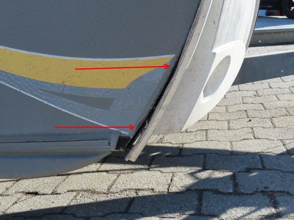 | Schadensbeschreibung | collision Cache PVC avant cassé. Fenêtre avant cassée. Partie inférieur panneau latéral droit cassée Autre dommage coin arrière droit endommagé, Détail paroi droite enfoncée et intérieur cassé |