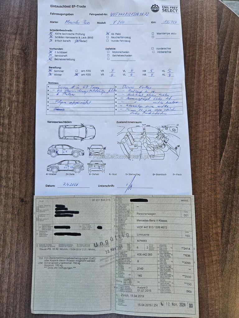 | Information | Service A in 67 Tagen EG Übereinstimmungsbescheinigung fehlt Felgen gebraucht Div. Kratzer - Radlauf hi.re. - Heckdeckel kleiner Kratzer - Aussenspiegel links beschädigt - Aussenspiegel rechts kratzer -Stossstange vo.re. -Schiebetüren li.+re. Kleine Parkschäden |