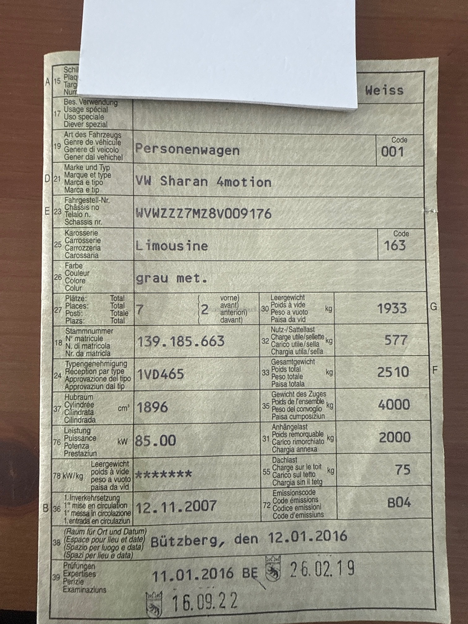 | Kommentar | Für Export Fährt und Schaltet Karosserie siehe Bilder 4x4 Allrad 7 Platz 1.9 TDI Am Fahrzeug wurde kein Werkstatttest gemacht, das heisst für sichtbare oder nicht sichtbare Mängel wird nicht gehaftet. Wir testen und kontrollieren nicht alle Funktionen vom Fahrzeug. Das Risiko liegt somit vollumfänglich beim Käufer. Nachdem der Höchstbietende den Zuschlag erhalten hat, gibt es keine Nachverhandlung. Fahrzeug wird ab Platz verkauft, das heisst ohne Garantie. Wandelung und Minderung werden wegbedungen. FZ muss innerhalb von 5 Tagen abgeholt werden. |