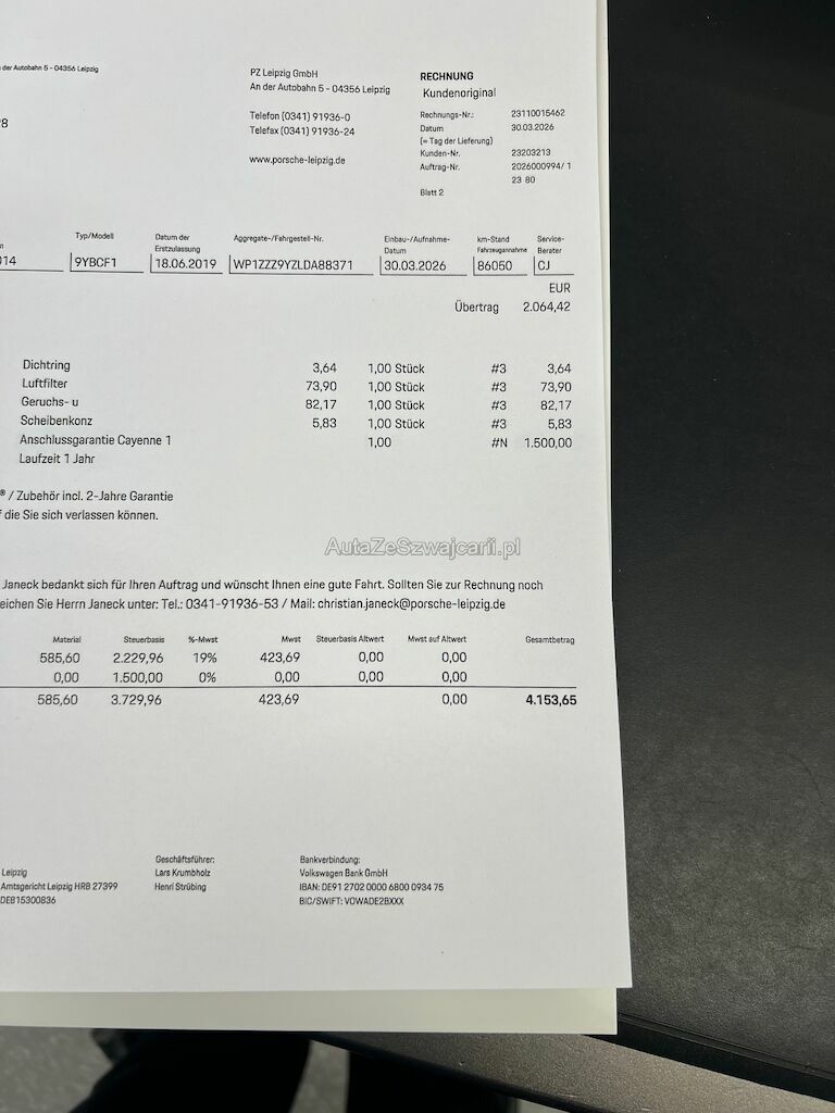 Im März 2026 wurden CHF 4153.- Investiert Technisch, FZ hat APPROVED Porsche Garantie bis 21.09.2027